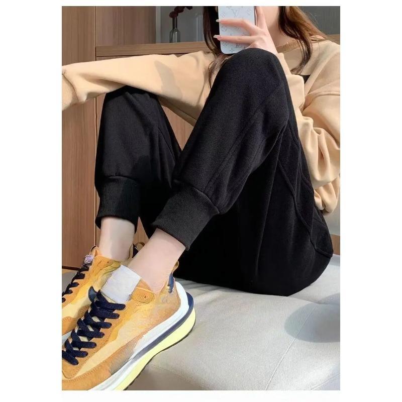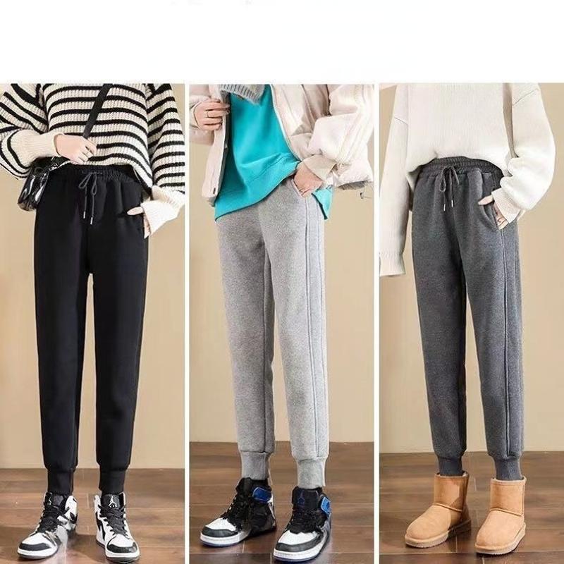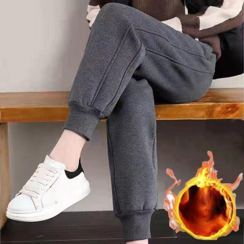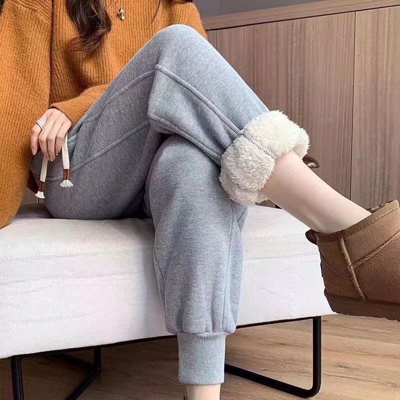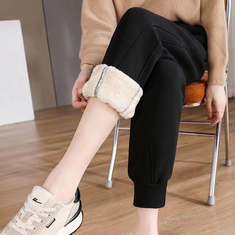 Женские брюки зимние однотонные толстые плюшевые теплые брюки женские повседневные свободные спортивные брюки с карманами на шнурке