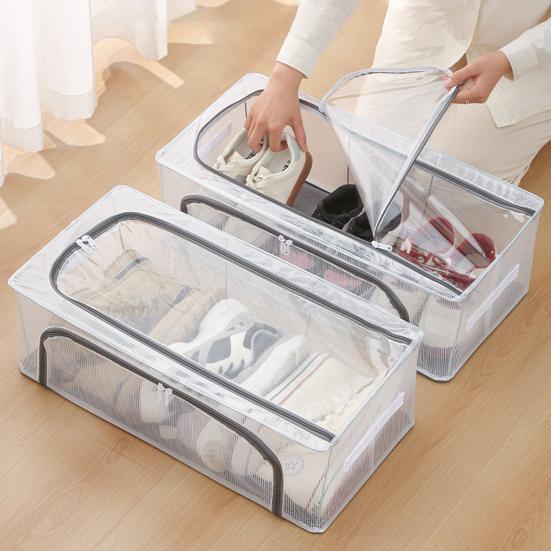 Представляем прозрачный ящик для хранения вещей — универсальное решение для ваших нужд по хранению.. Выбирайте между односторонними или двухсторонними открытиями в соответствии с вашими предпочтениями.. Изготовленный из водонепроницаемого и пыленепроницаемого ПВХ-корпуса, этот ящик имеет прочную стальную раму, которую можно сложить для удобства хранения без риска опрокидывания.