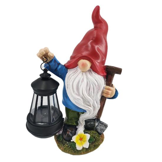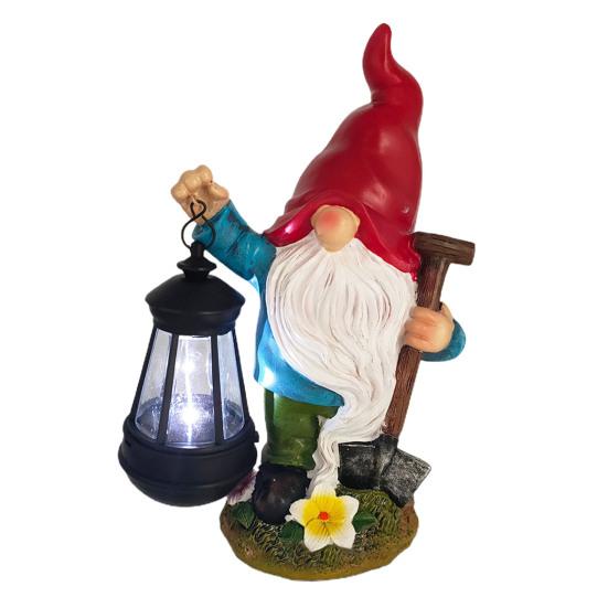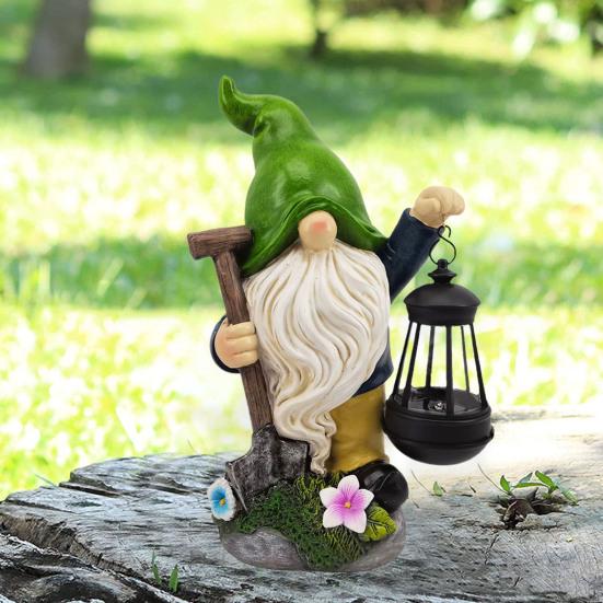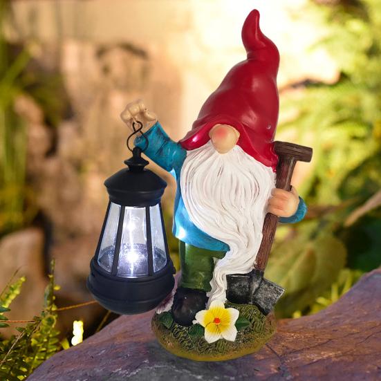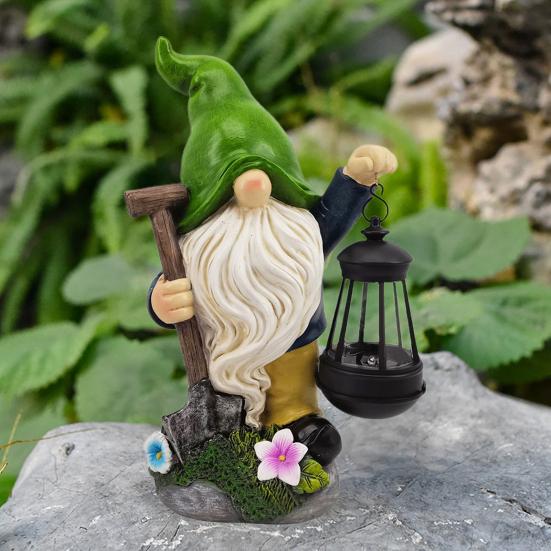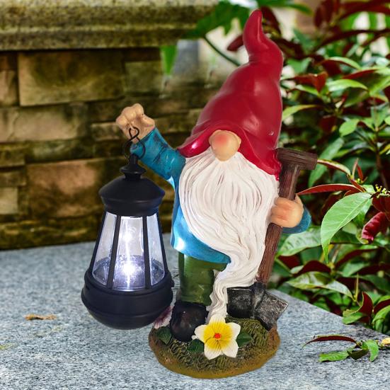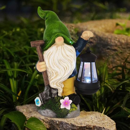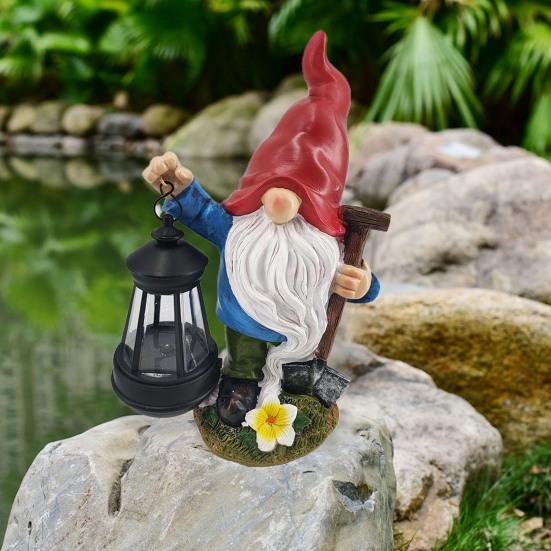 Освещение на солнечных батареях: Эта фигурка гнома, оснащенная светодиодными фонарями на солнечных батареях, поглощает энергию в течение дня и тепло светится ночью, создавая причудливую и очаровательную атмосферу в вашем саду или на террасе.
