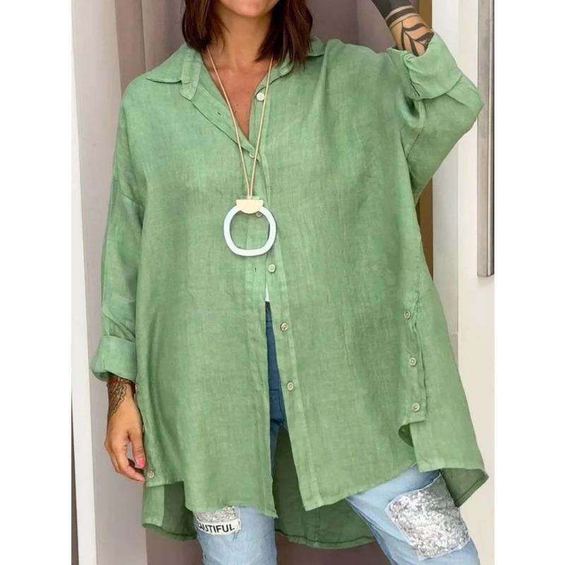 Большие размеры Весна и лето Женская однотонная свободная повседневная рубашка с лацканами