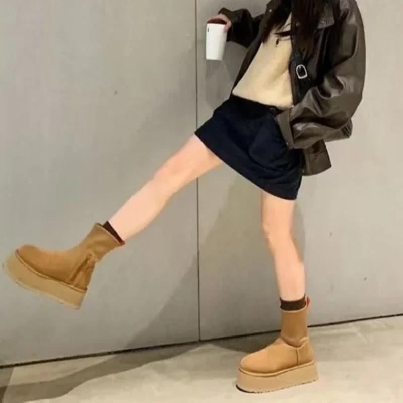Женская обувь, женские сапоги до середины голени, модные короткие плюшевые повседневные сапоги, женские зимние сапоги с круглым носком и толстой подошвой — купить товар онлайн с бесплатной доставкой по всему миру!