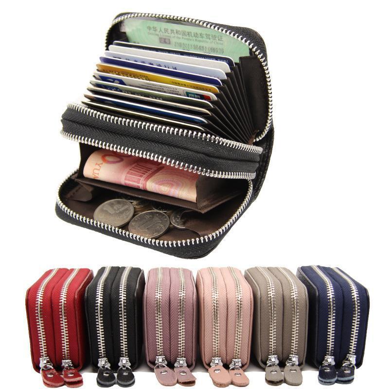 Держатель для карт из цельной воловьей кожи с несколькими отделениями для карт, защитой от сканирования, двойной молнией, унисекс-кошелек для монет и органайзер для карт — купить товар онлайн с бесплатной доставкой по всему миру!
