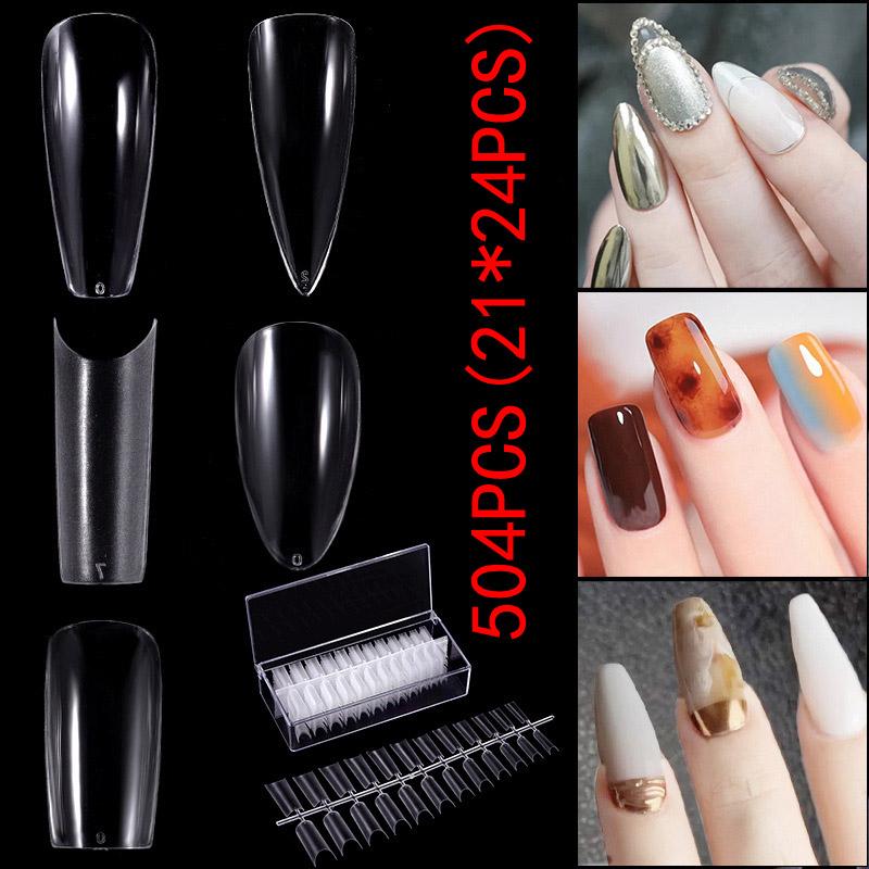 504 шт. прозрачные накладные ногти-стилеты акриловые балерины длинные накладные ногти полупокрытие гроб профессиональные накладные ногти — купить товар онлайн с бесплатной доставкой по всему миру!