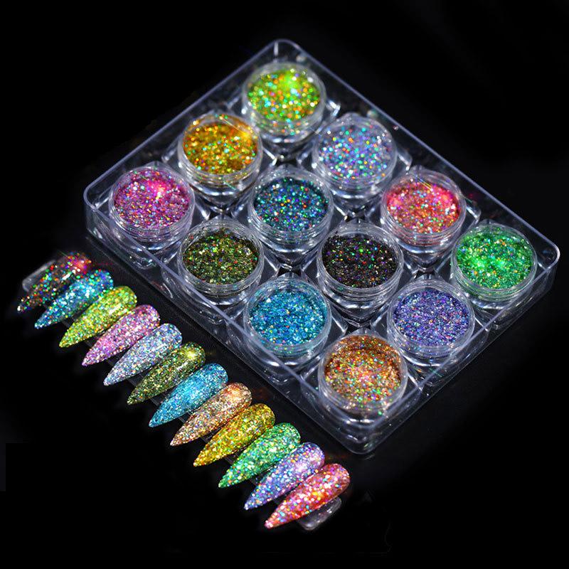 12 цветов для дизайна ногтей лазерные блестки блестки светлая пудра украшения ногтей в коробке симфония блестки для ногтей — купить товар онлайн с бесплатной доставкой по всему миру!