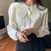 Harajuku Кукольный воротник Белая Милая Рубашка Женская Свободная Милая Шнуровка Французские Топы Женские Осенние Модные Длинные Рукава Однотонные Рубашки Для Женщин