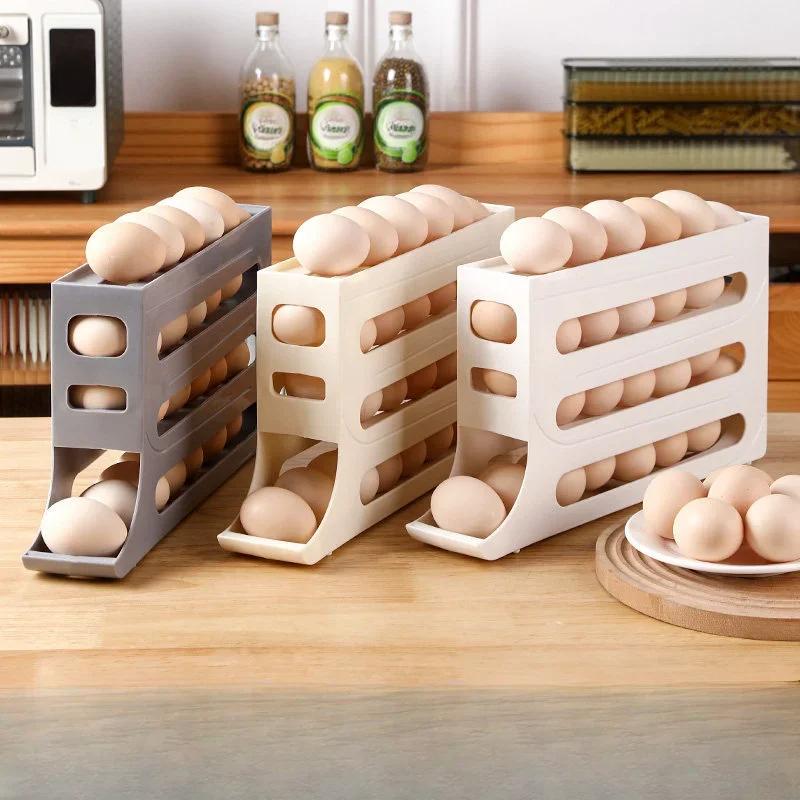 Бытовая автоматическая вращающаяся коробка для хранения яиц, кухонный холодильник, боковая дверца, подставка для хранения яиц, 30 сеток, держатель для яиц
