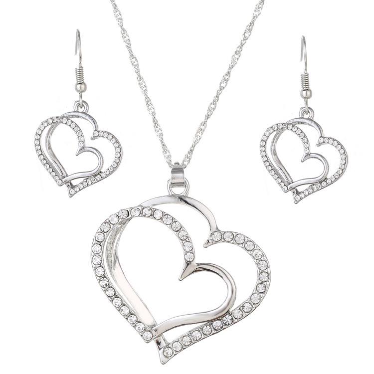 3 шт./компл. комплект украшений в форме сердца, серьги, ожерелье с подвеской для женщин, изысканный модный комплект украшений в форме сердца со стразами и персиковым сердцем