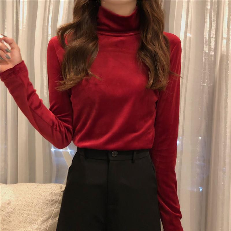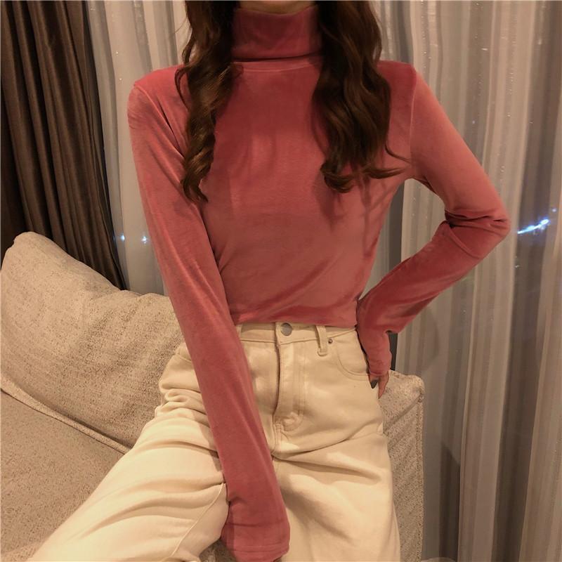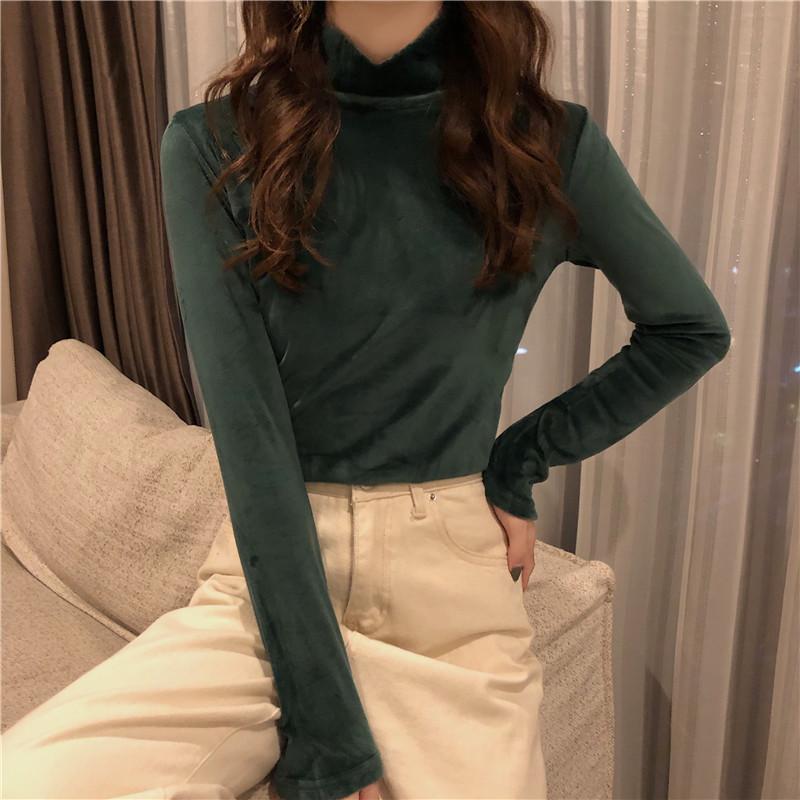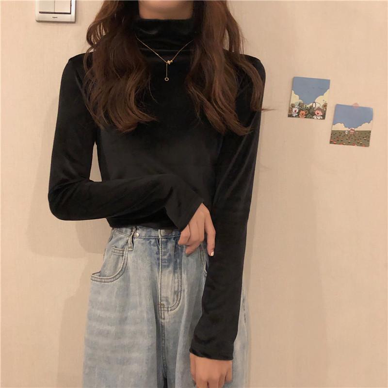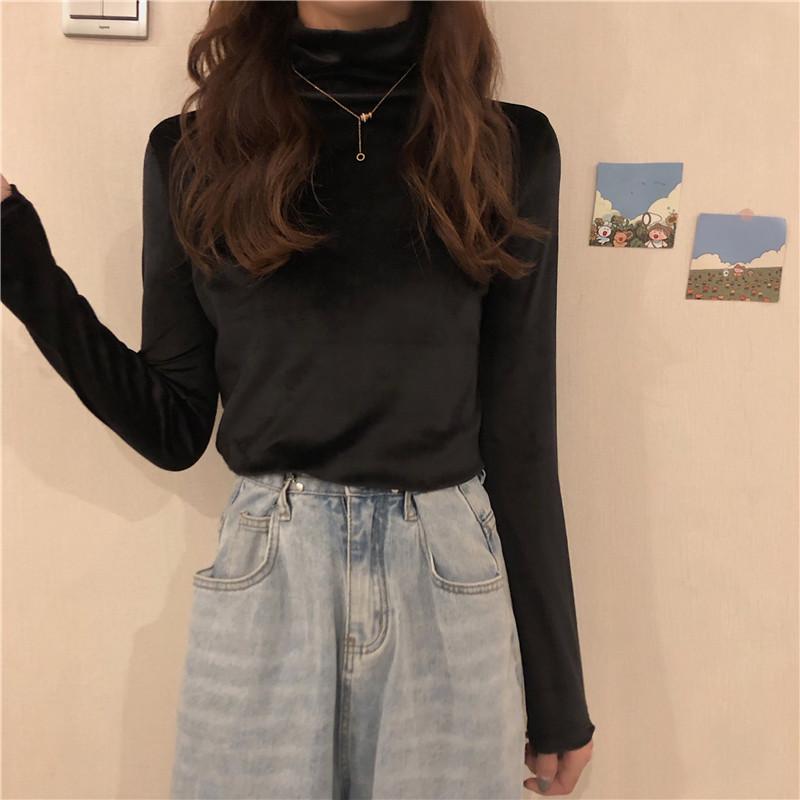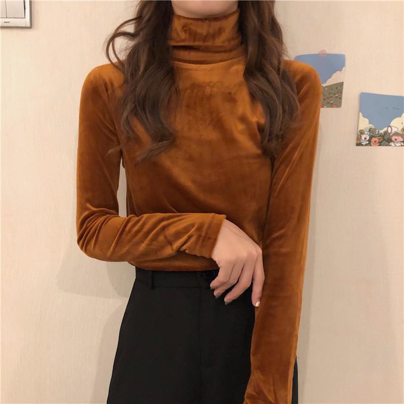 Осень-зима Тонкая водолазка повседневные футболки женские с длинным рукавом золотистый бархат нижняя футболка женские пуловеры утолщенный топ Y2k