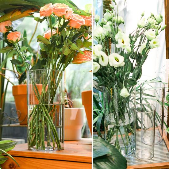 Эта прозрачная цилиндрическая ваза идеально подходит для самых разных цветов: от бамбука до роз и орхидей. Она пользуется популярностью у любителей цветочных композиций.. Вы также можете проявить креативность, добавив искусственные жемчужины, камешки или другие наполнители, чтобы улучшить его визуальную привлекательность.