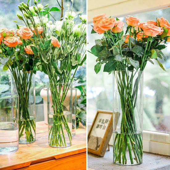 Универсальное использование: Эта прозрачная цилиндрическая ваза идеально подходит для различных цветов, таких как розы, подсолнухи, орхидеи и т. д., и является фаворитом среди любителей цветочных композиций.. Также в него можно помещать такие наполнители, как искусственный жемчуг и галька.