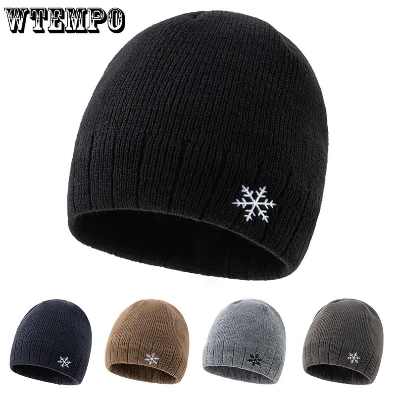 WTEMPO Большие размеры однотонные теплые вязаные шапки с меховой подкладкой осень-зима утепленные ветрозащитные повседневные универсальные шапки