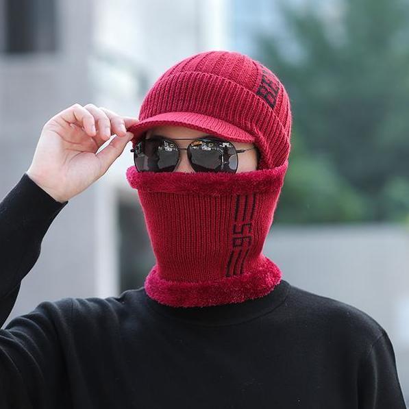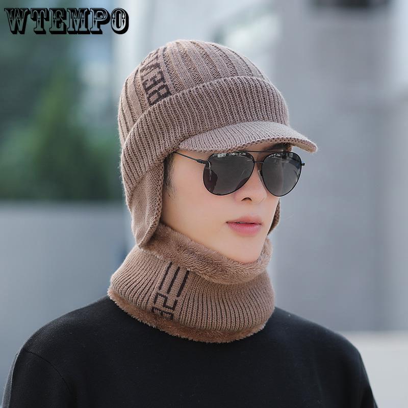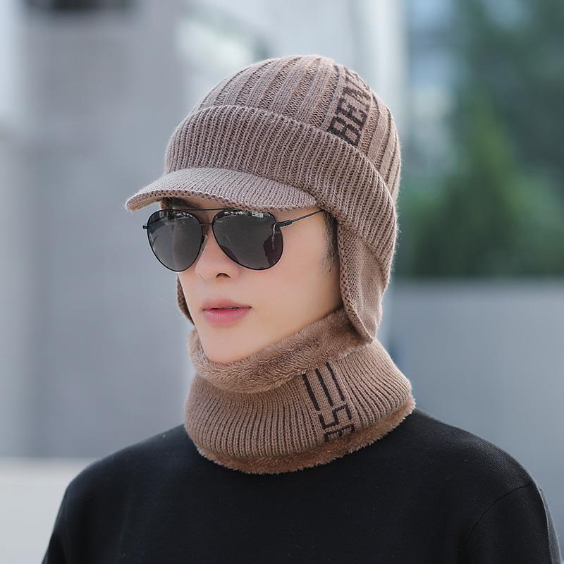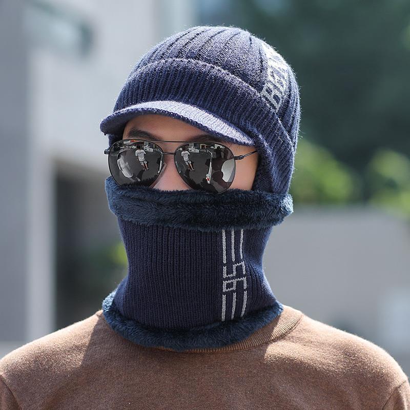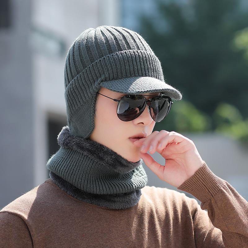 Шапка мужская большого размера, зимняя шапка, теплая хлопковая шапка для улицы среднего возраста, шарф, защита ушей, вязаная шапка