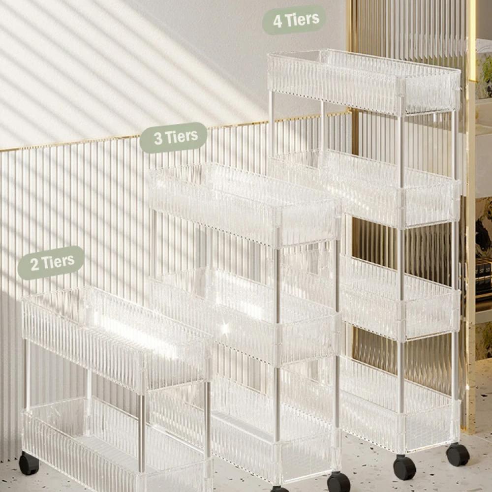 Акриловая прозрачная тележка для хранения вещей, передвижная тележка на колесах, узкий стеллаж для хранения вещей с колесами, съемная полка для ванной комнаты, 2/3/4 уровня