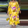 Женское платье больших размеров с открытыми плечами и длинными рукавами с принтом