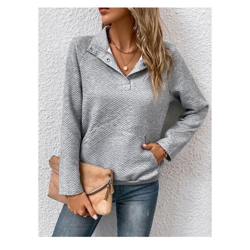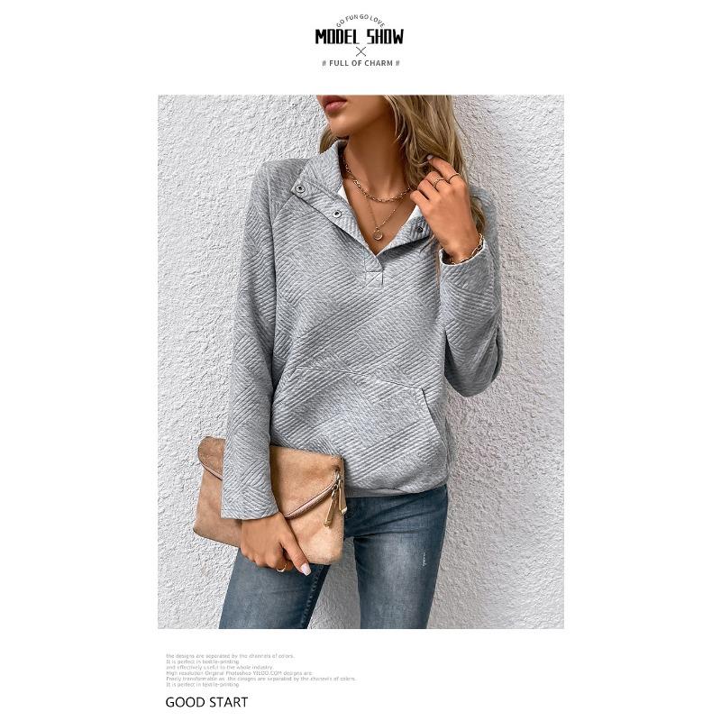 Серая рубашка с воротником, женская, с длинным рукавом, с текстурой, воротником-стойкой, однотонная толстовка с капюшоном, повседневная, свободная, базовая рубашка, толстовка с капюшоном для поездок на работу, новая мода, осень