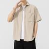 Однотонная рубашка с короткими рукавами, мужская рубашка-рубашка для инструментов, повседневная, универсальная, со свободными лацканами, не требующая глажки