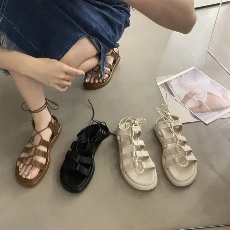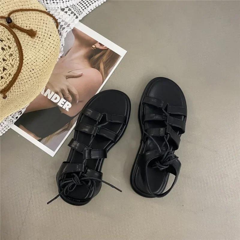 Модные женские сандалии-гладиаторы, женские сандалии-стринги на шнуровке с перекрестными ремешками, женская дизайнерская обувь на плоской подошве, Sandalias De Mujer