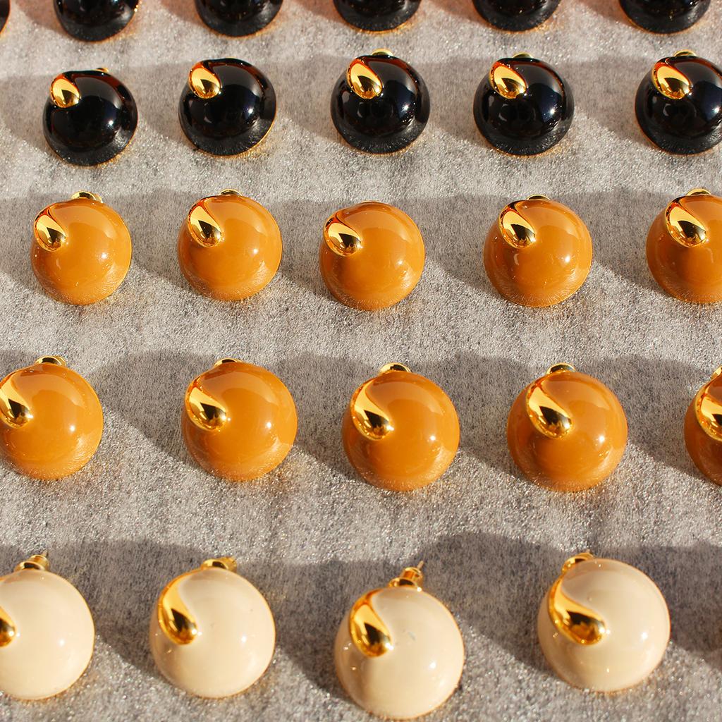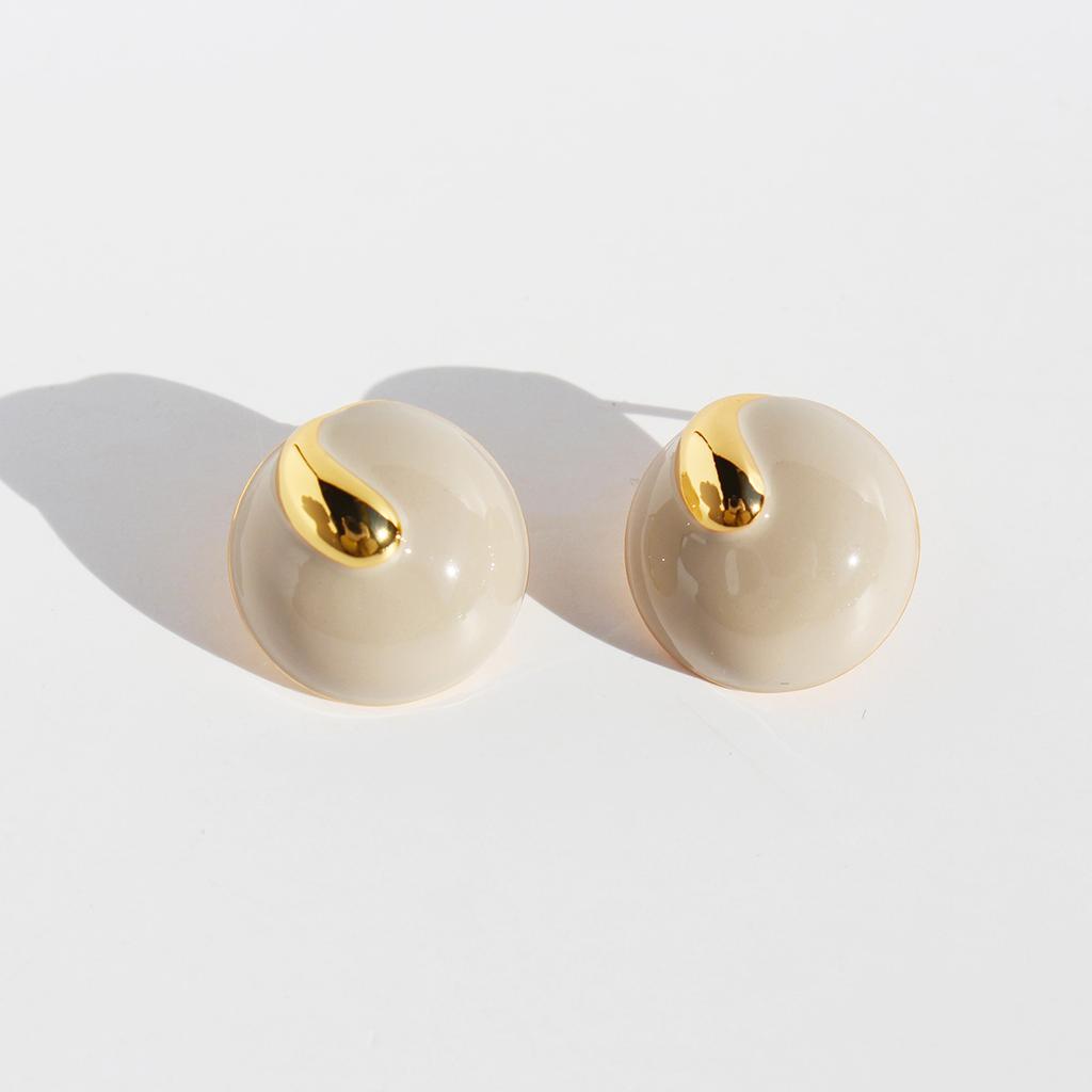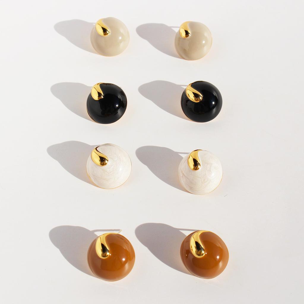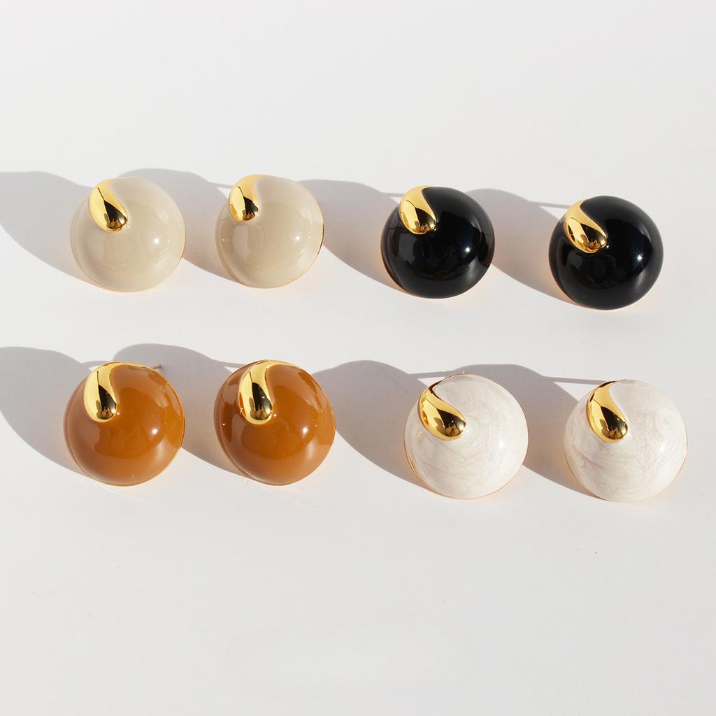 Осень и зима Новые круглые серьги-гвоздики ручной работы с эмалью Майяра коричневого цвета, женские серьги с жемчужно-белой глазурью