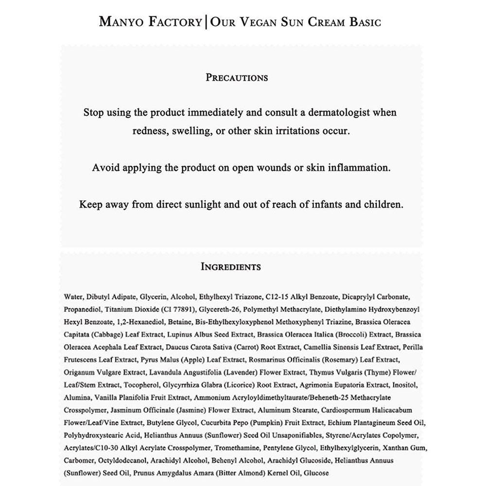 MANYO FACTORY Наш веганский базовый ежедневный солнцезащитный крем 50 мл (SPF50 +)