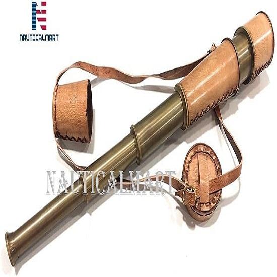 Телескоп изготовлен из латуни и кожи.; Измерение: 5,5 х 5,5 х 18 см (2,17 x 2,17 x 7,09 см (18 дюймов в развернутом виде).