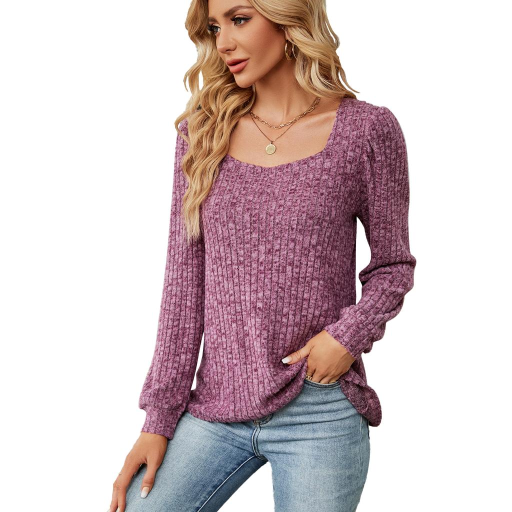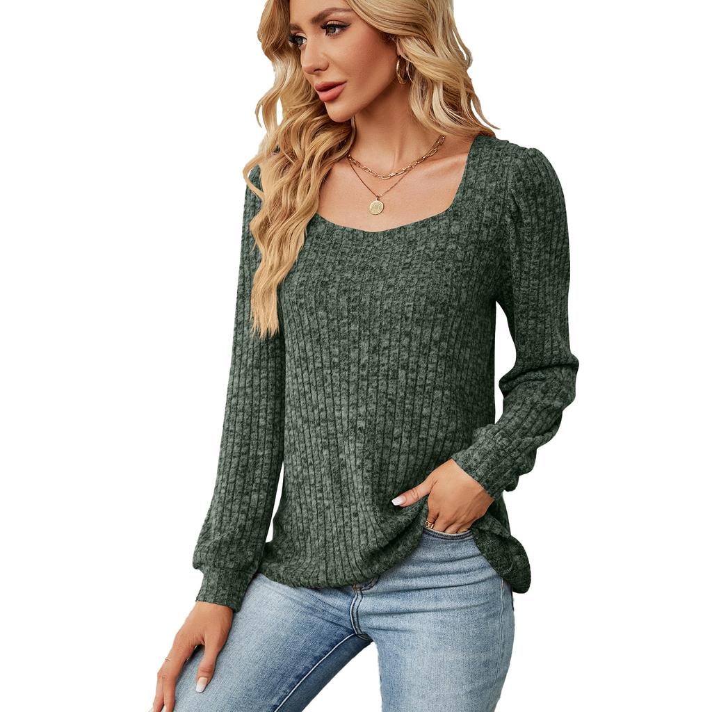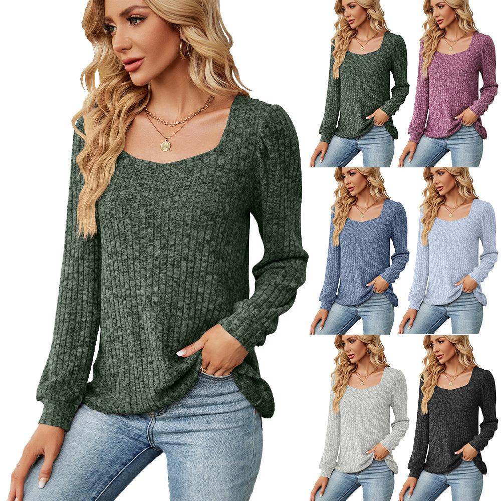 2024 Европейская и Американская Осень И Зима Новая Однотонная Футболка с Квадратным Вырезом и Длинными Рукавами Свободная Футболка Топ Для Женщин