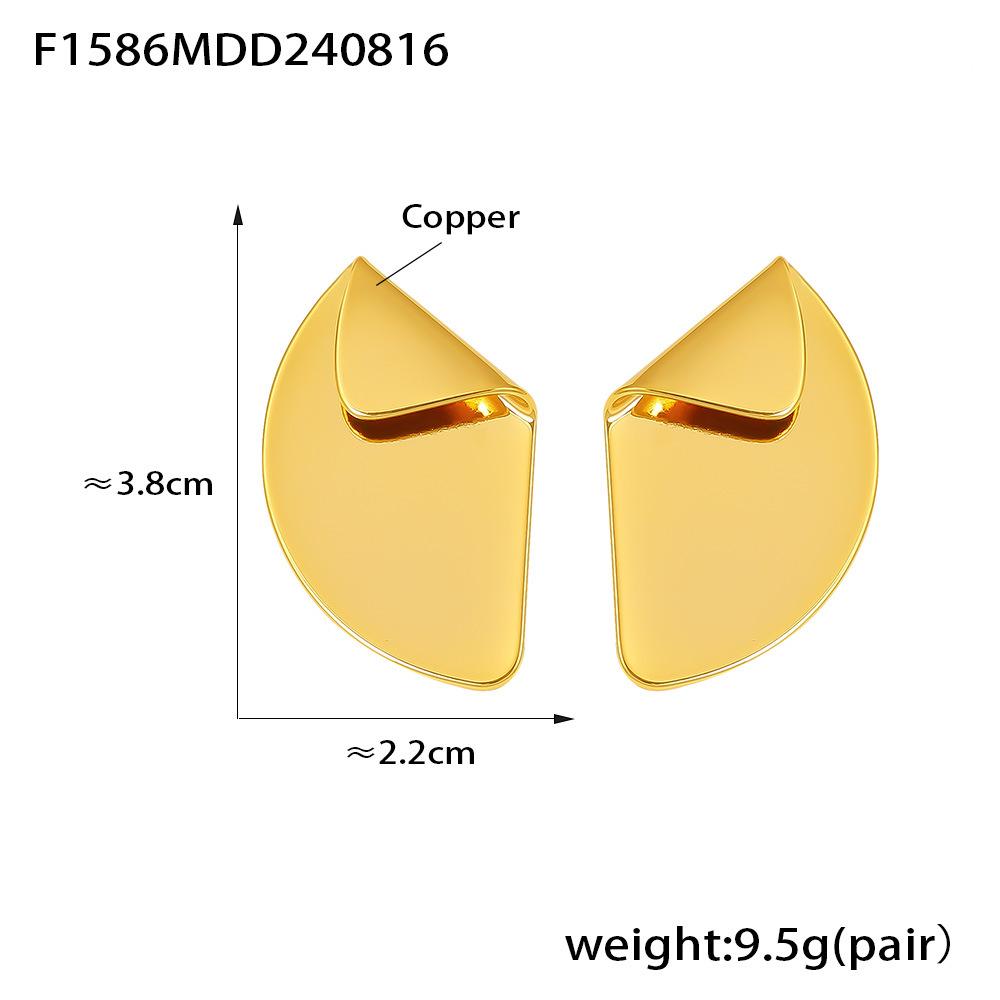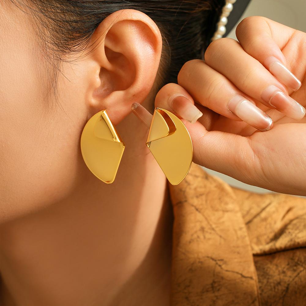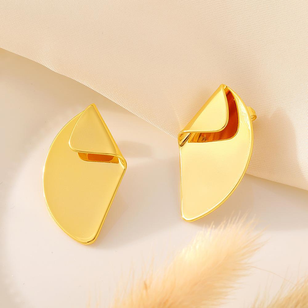 Серьги-гвоздики Wind Gold с неровным изгибом и геометрическим узором в форме веера, дизайн «Temperament Niche», медный материал, покрытый 18-каратным настоящим золотом