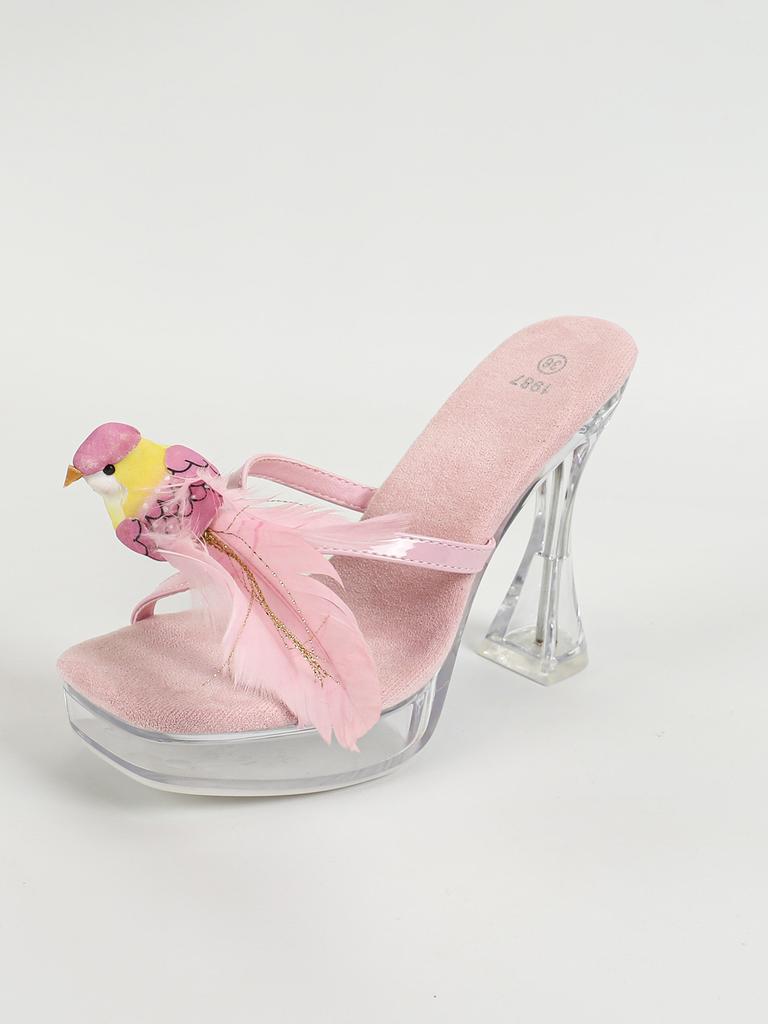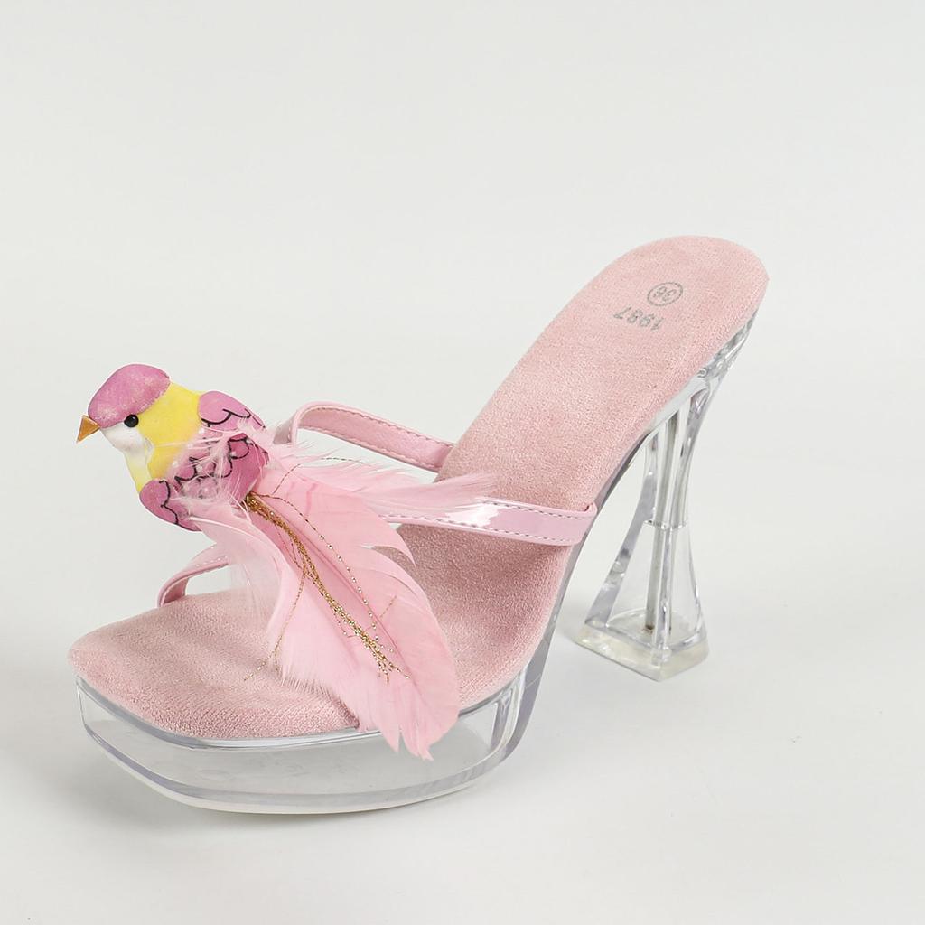 Женская модель Bird Sexy Car, модная, прозрачная, для ночного клуба, толстый каблук, кристалл, квадратная головка, нескользящая, 12 см, LFD-1987-53