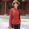 Johnature Женские рубашки-стойки в китайском стиле, теплые осенние топы, вышитые цветочные блузки, мягкая рубашка с длинным рукавом