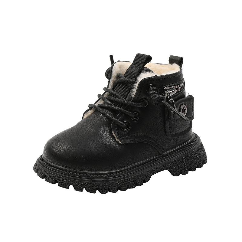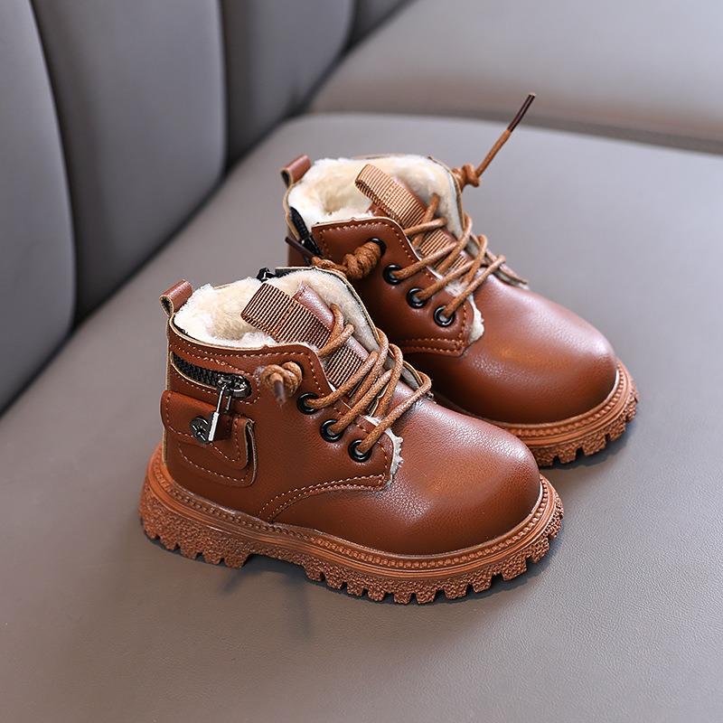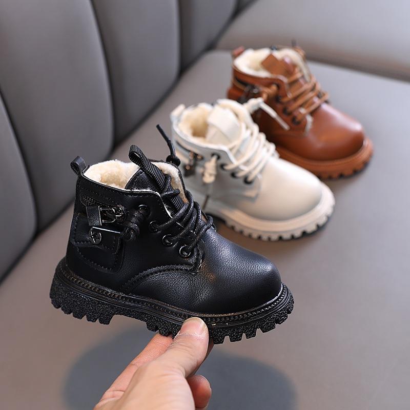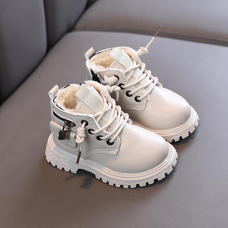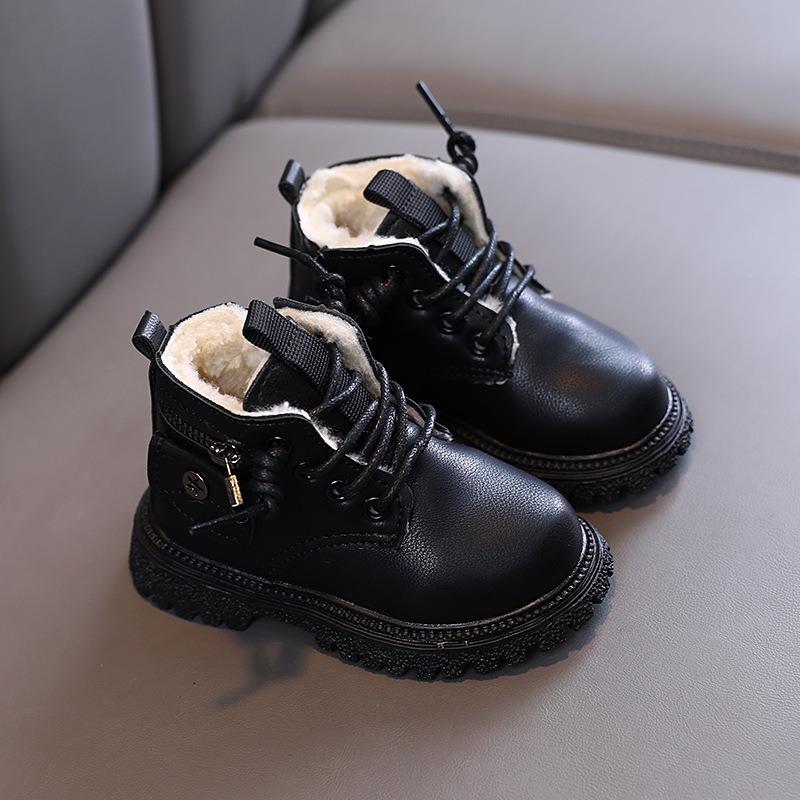 Обувь из хлопка для девочек, зимняя, с утолщенным флисом, новая детская зимняя обувь для мальчиков, ботинки Martin в британском стиле с низкой трубкой и мягкой подошвой для малышей