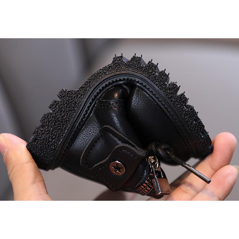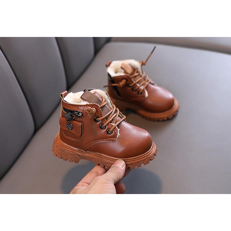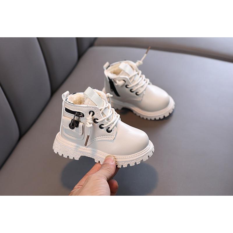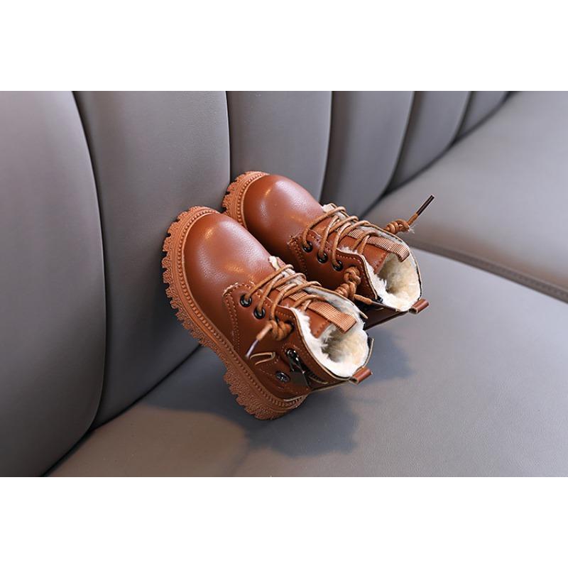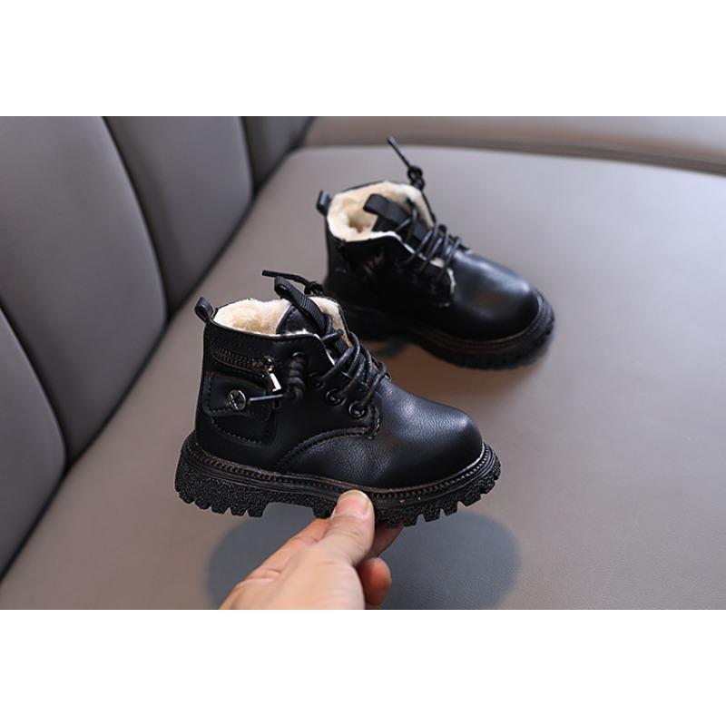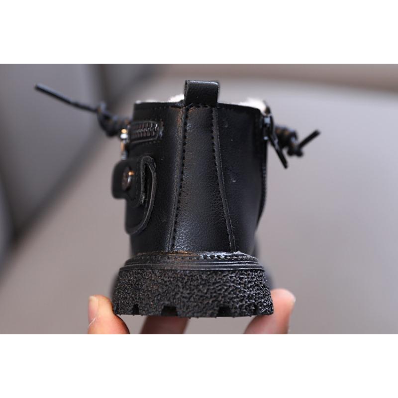 Обувь из хлопка для девочек, зимняя, с утолщенным флисом, новая детская зимняя обувь для мальчиков, ботинки Martin в британском стиле с низкой трубкой и мягкой подошвой для малышей