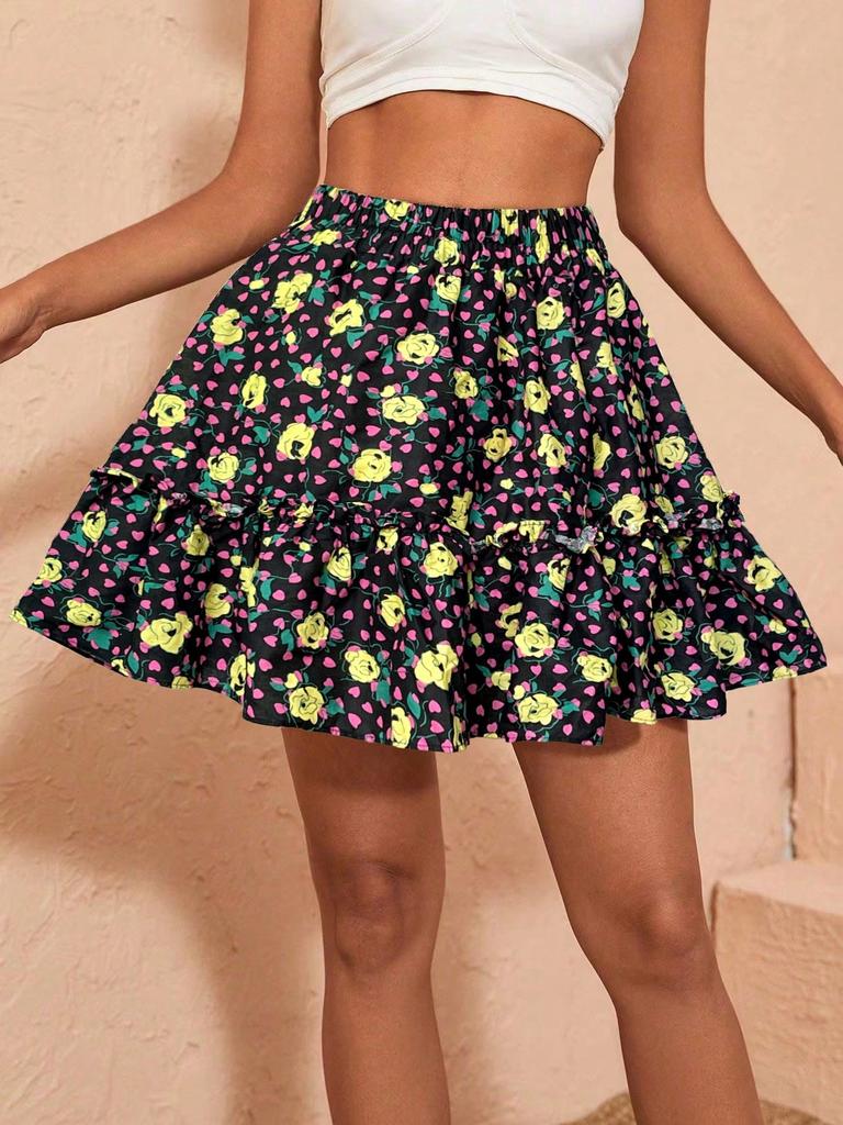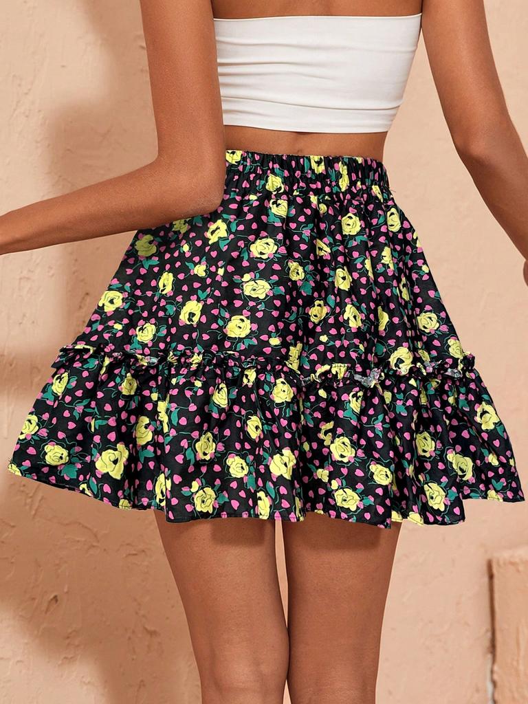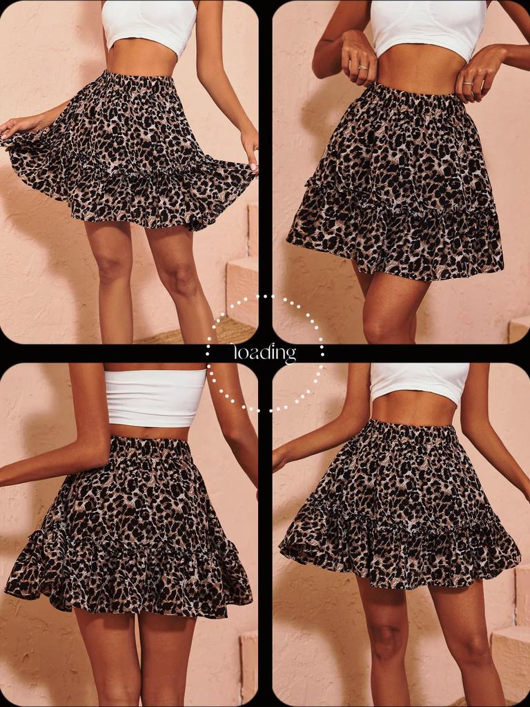 Rose Beauty A Базовые юбки Женские шорты Мини эластичные плиссированные юбки Леопардовый принт Оборка по низу A Расклешенная юбка