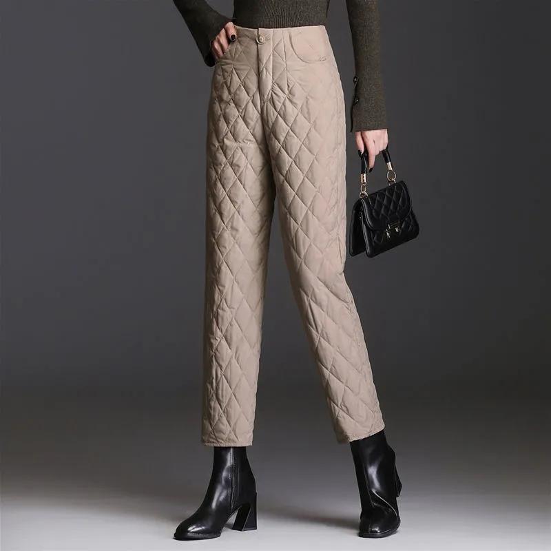 Брюки-пуховики осенне-зимняя женская верхняя одежда мода плюс бархатные утолщенные с высокой талией свободные прямые теплые хлопковые брюки — купить товар онлайн с бесплатной доставкой по всему миру!
