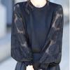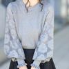 Весна и осень французский стиль кружева сращивание рукава фонарь круглый вырез капюшон свитер женский вязаный свитер верхняя одежда