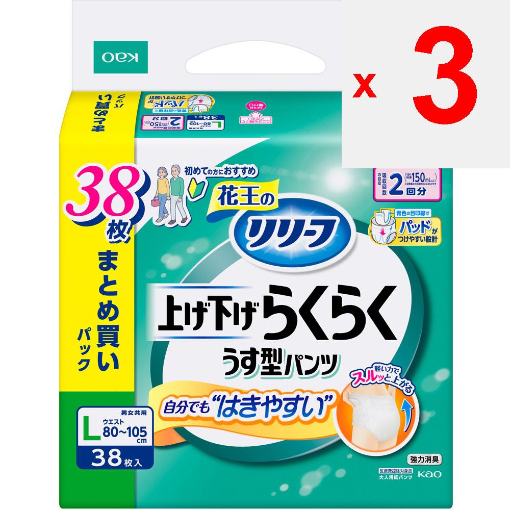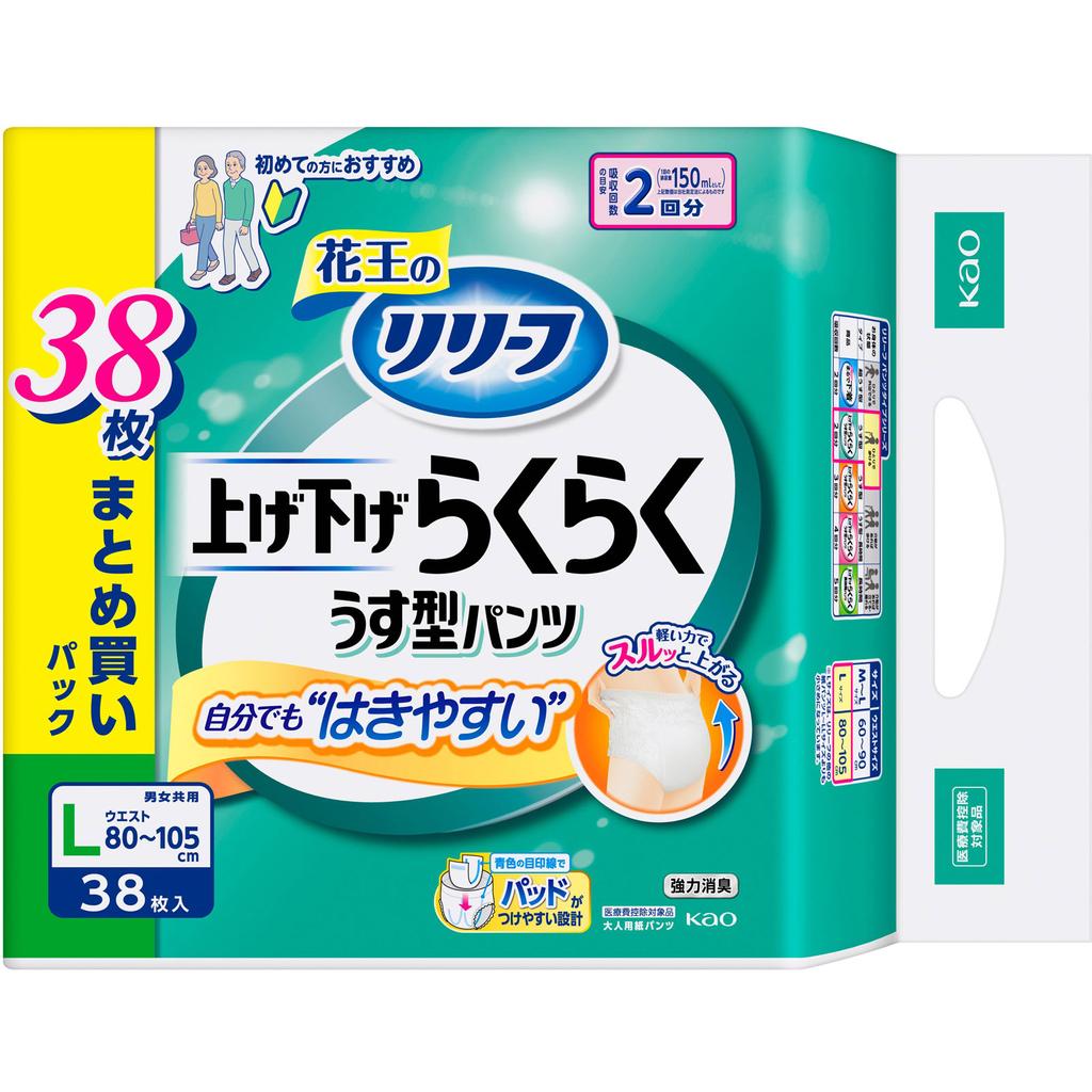 KAO Подгузники для взрослых Relief Pants Type Raise/Lower Raku Raku Thin Type Pants 2 раза L 38 шт.: Тип брюк Тонкий тип