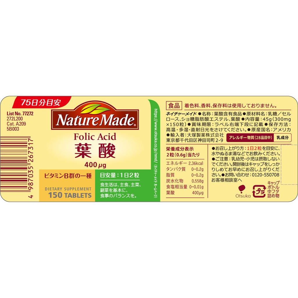 Otsuka Nature Made Фолиевая кислота 150 гранул Другое (проверьте замки, очистители языка и т. д.) Витамины Другое (проверьте замки, очистители языка и т. д.)