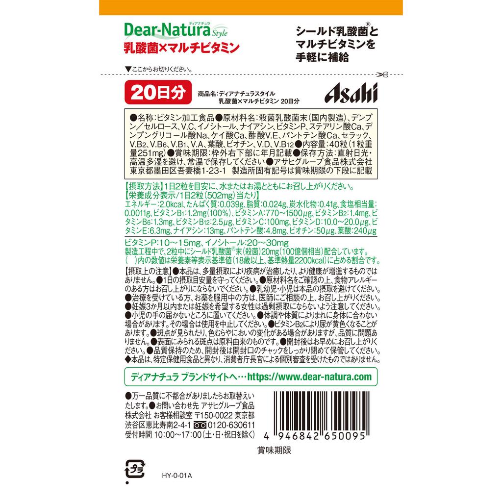 Asahi Dear-Natura Style Lactobacillus x Мультивитамины 40 капсул (20 дней) Комплексные витамины Витамины Комплексные витамины