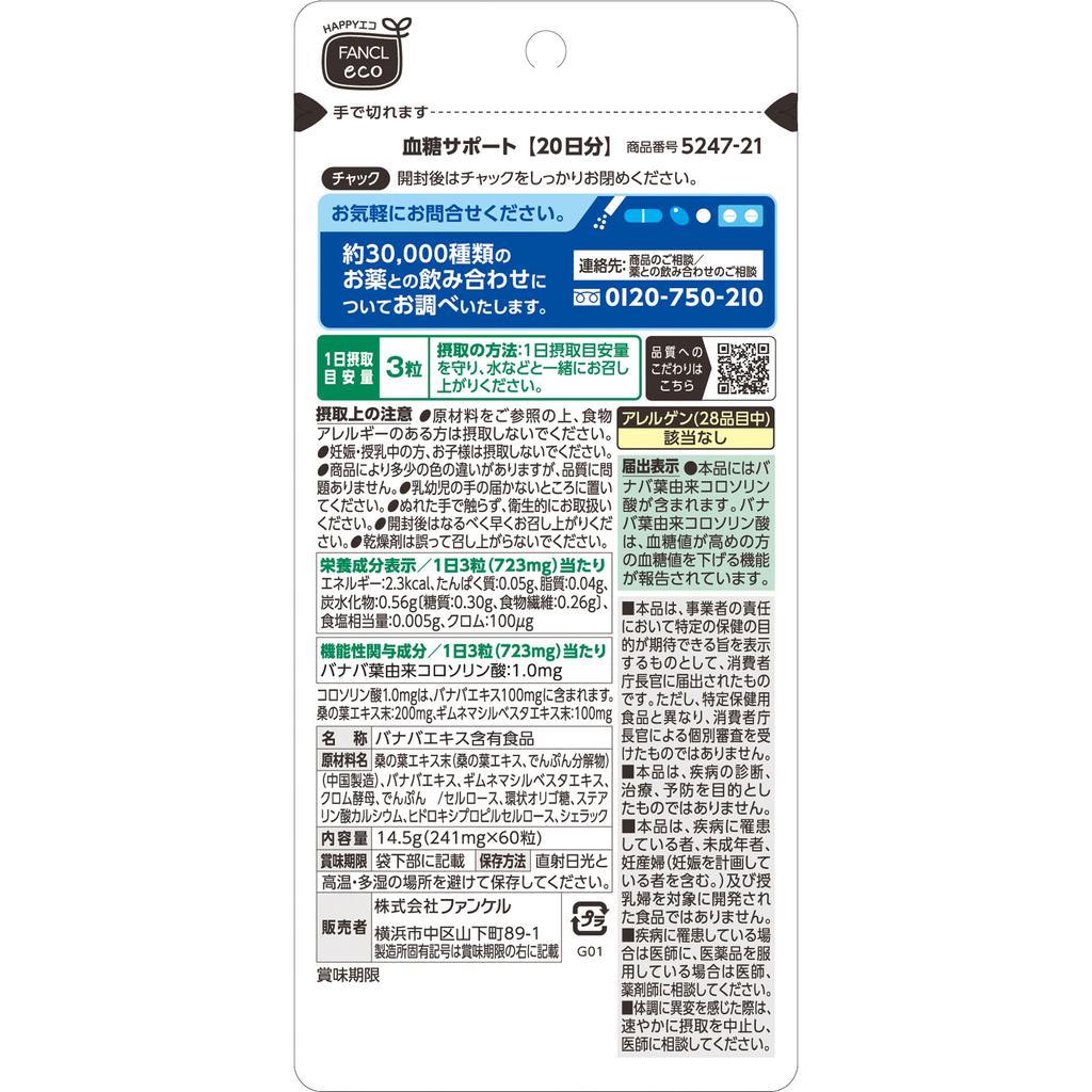 Fancl ФАНКЛ (Больше) Поддержка уровня сахара в крови 20 дней 60 капсул Профилактика образа жизни Функциональные продукты Профилактика образа жизни