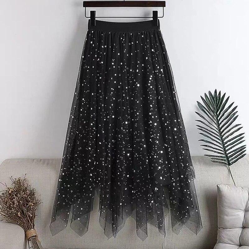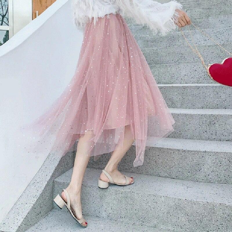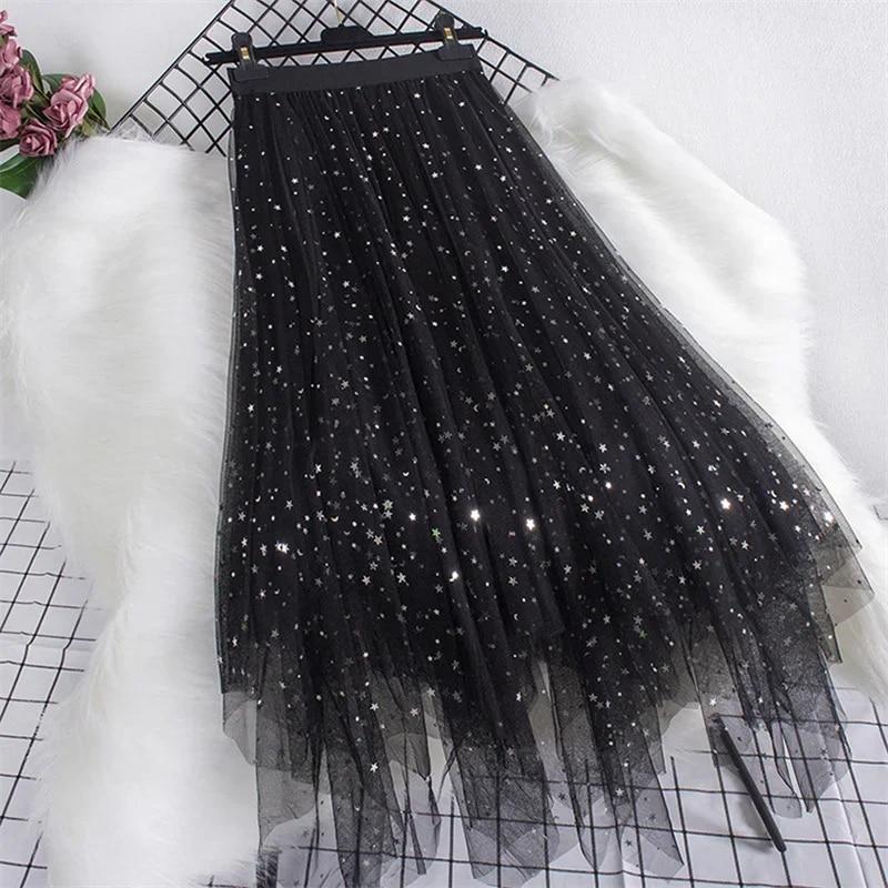 Женская юбка-пачка из сетчатой ткани Fairy Star с пайетками, блестящая длинная юбка-трапеция из тюля с эластичной резинкой на талии
