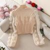 Женские свитера с высоким воротником, джемперы с рукавами-пузырями, сетчатые узкие короткие трикотажные топы с милыми цветами, шифоновая рубашка — купить товар онлайн с бесплатной доставкой по всему миру!