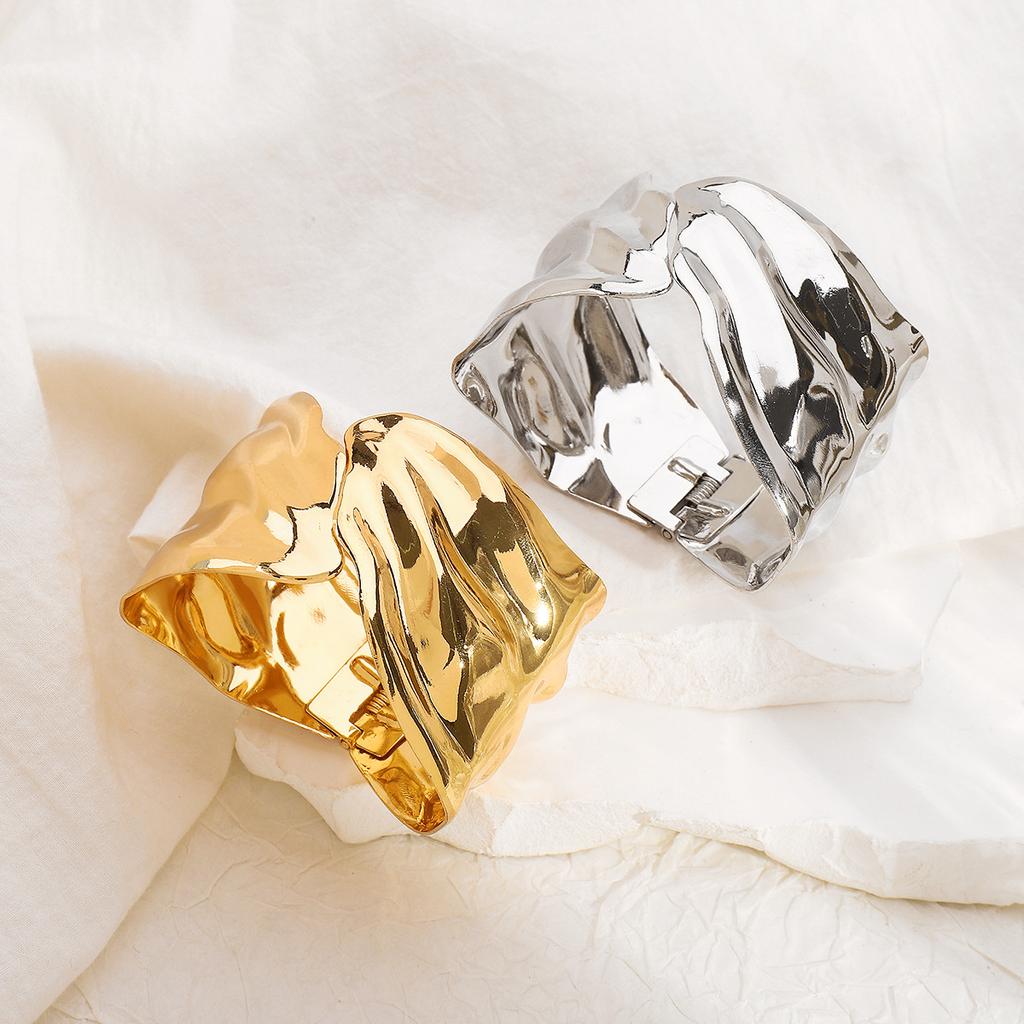Нестандартный широкий браслет с вогнутыми и выпуклыми элементами, нишевый дизайн, минималистичный и универсальный, плиссированный текстурный браслет
