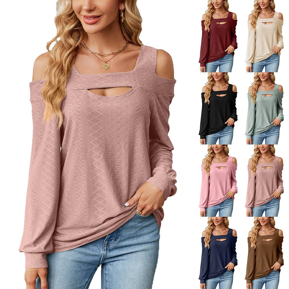2024 Европейская и Американская Осень И Зима Новая Однотонная Полая Свободная Футболка С Длинными Рукавами Топ Для Женщин — купить товар онлайн с бесплатной доставкой по всему миру!