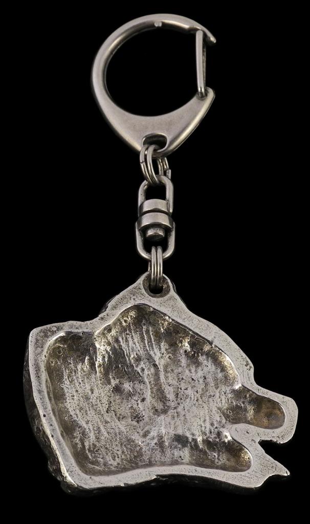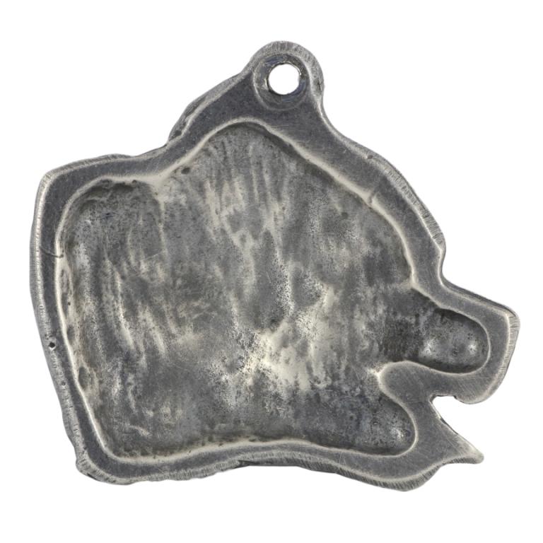 Наши высококачественные подвески созданы вручную английским художником.. Они характеризуются исключительной точностью изготовления и вниманием к деталям, что позволяет максимально точно воспроизвести отличительные черты породы.. Для производства мы используем высококачественный сплав цинка и алюминия, что делает нашу продукцию долговечной и устойчивой к повреждениям.. Вы сможете наслаждаться ими долгие годы.. Наши брелоки покрыты слоем серебра, что также делает их оригинальным украшением, которое можно прикрепить как к связке ключей, так и к замку сумочки или рюкзака.. Удобное и прочное крепление гарантирует, что они не отсоединятся сами по себе.. Наши брелоки обязательно принесут много радости владельцам собак.. Они идеально подходят в качестве подарка на день рождения или именины, а также для десятков других случаев, таких как выставка собак или появление новой собаки.. Наши брелоки также доступны в других вариантах и в декоративных коробках.. Для получения более подробной информации ознакомьтесь с нашими другими предложениями.. Габаритные размеры: проверьте размеры на одной из прикрепленных фотографий. Материал: Сплав цинка и алюминия (ZnAl), Серебряное покрытие. Изделие подвергнуто процессу патинирования.
