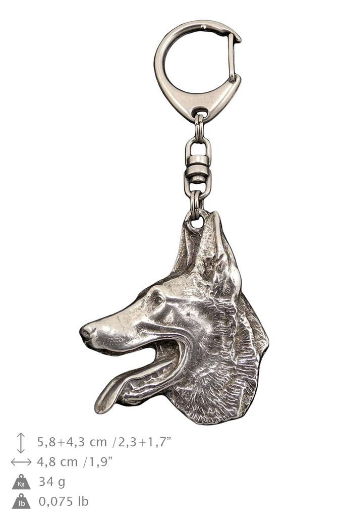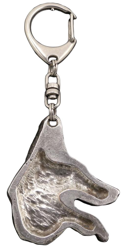 Наши высококачественные подвески созданы вручную английским художником.. Они характеризуются исключительной точностью изготовления и вниманием к деталям, что позволяет максимально точно воспроизвести отличительные черты породы.. Для производства мы используем высококачественный сплав цинка и алюминия, что делает нашу продукцию долговечной и устойчивой к повреждениям.. Вы сможете наслаждаться ими долгие годы.. Наши брелоки покрыты слоем серебра, что также делает их оригинальным украшением, которое можно прикрепить как к связке ключей, так и к замку сумочки или рюкзака.. Удобное и прочное крепление гарантирует, что они не отсоединятся сами по себе.. Наши брелоки обязательно принесут много радости владельцам собак.. Они идеально подходят в качестве подарка на день рождения или именины, а также для десятков других случаев, таких как выставка собак или появление новой собаки.. Наши брелоки также доступны в других вариантах и в декоративных коробках.. Для получения более подробной информации ознакомьтесь с нашими другими предложениями.. Габаритные размеры: проверьте размеры на одной из прикрепленных фотографий. Материал: Сплав цинка и алюминия (ZnAl), Серебряное покрытие. Изделие подвергнуто процессу патинирования.