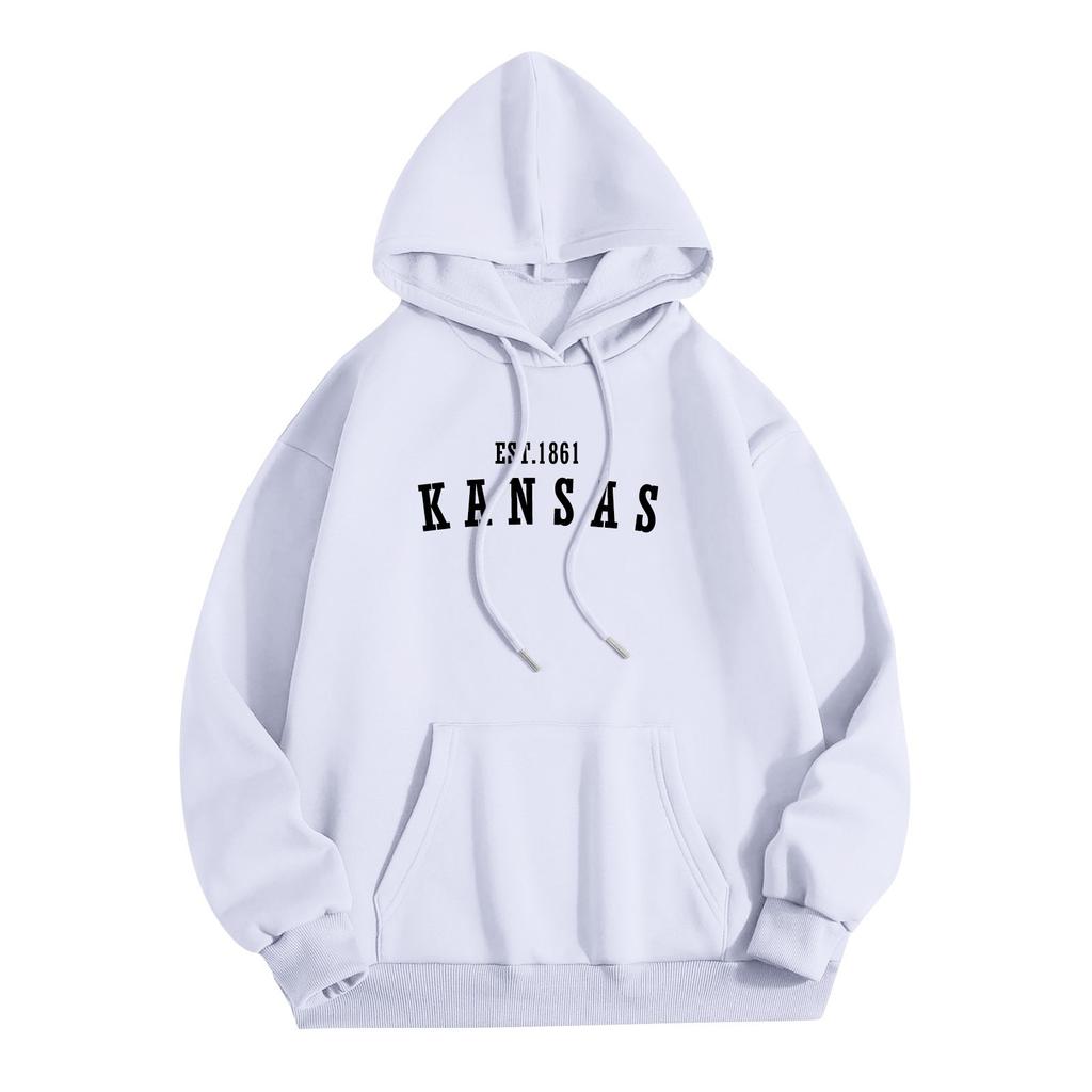 Женская мода O-образный вырез с длинным рукавом и принтом, толстовка с капюшоном