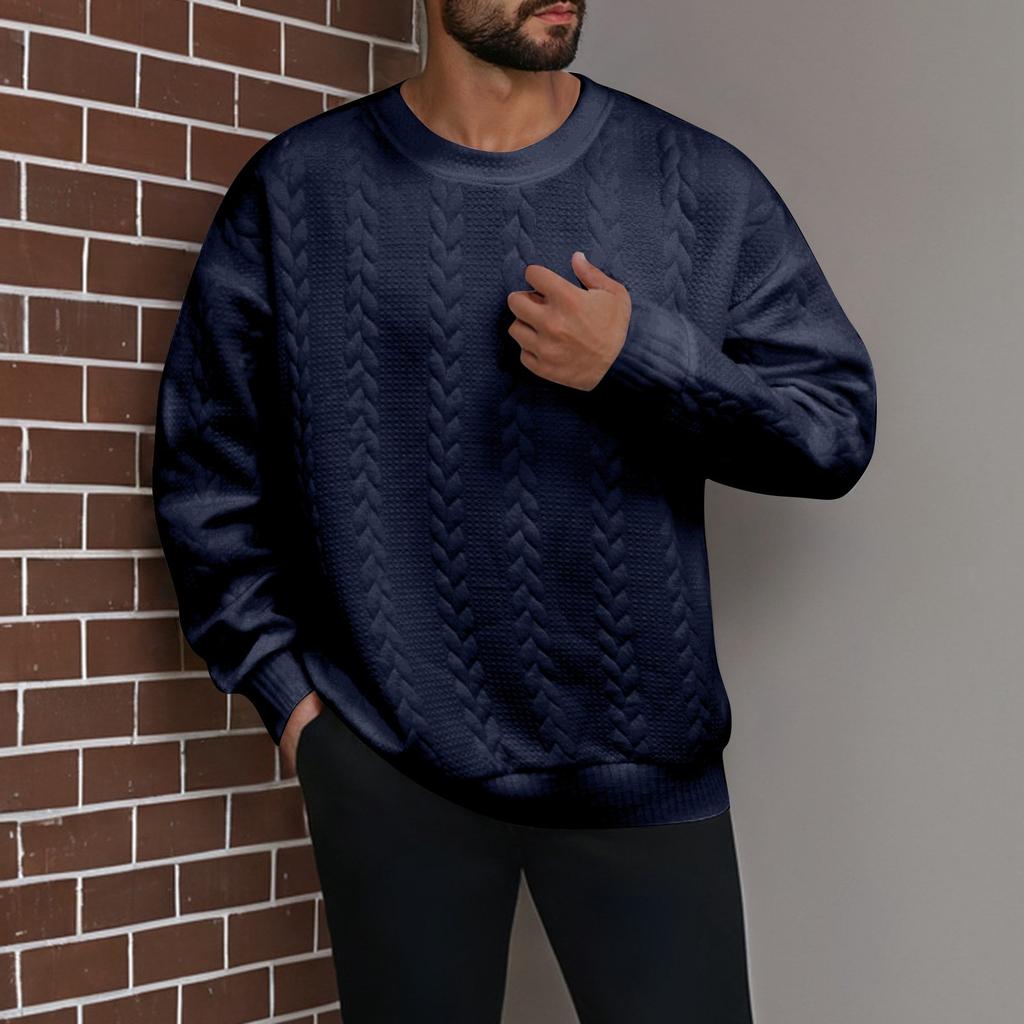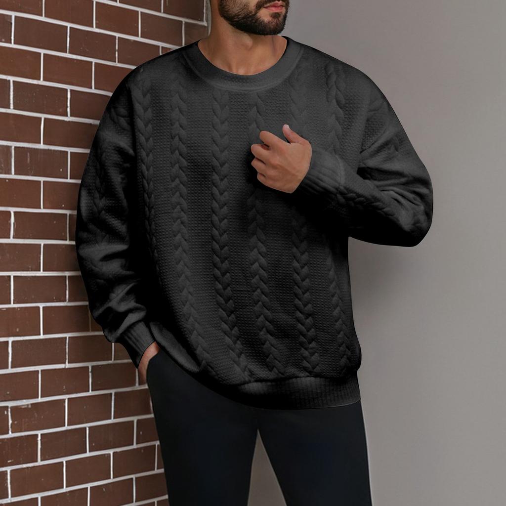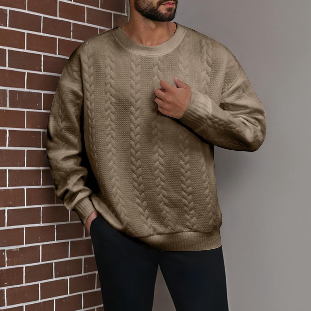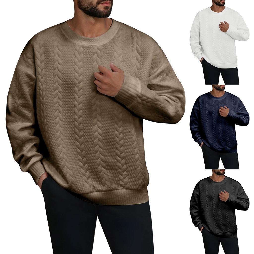 Мужская зимняя однотонная повседневная толстовка с длинным рукавом и круглым вырезом