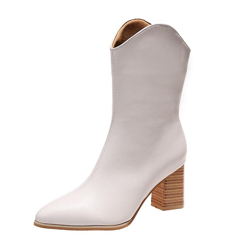 Осенняя и зимняя обувь больших размеров, удобные, с боковой молнией, средней высоты, на толстом каблуке, с острым носком, женские ботинки