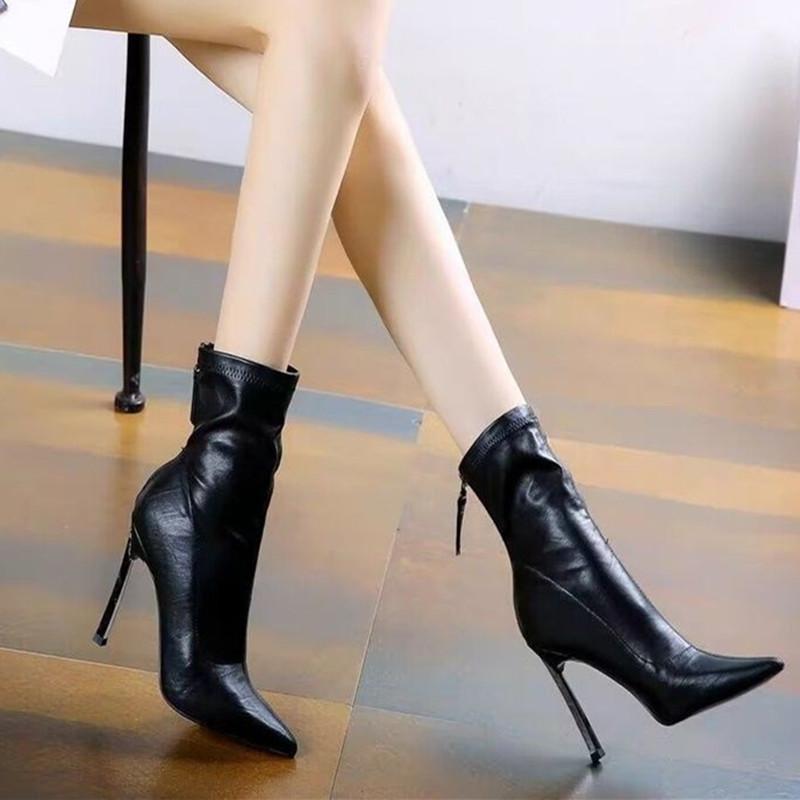Осенняя и зимняя обувь больших размеров, удобные, с застежкой-молнией сзади, с острым носком, на высоком каблуке, на среднем каблуке, на тонком каблуке, женские сапоги — купить товар онлайн с бесплатной доставкой по всему миру!