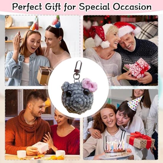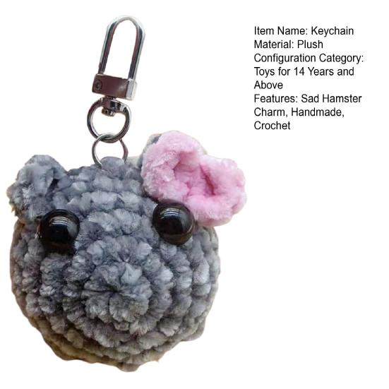 Изысканный вязаный дизайн: Брелок для ключей Sad Hamster Plush имеет замысловатый вязаный дизайн, который добавит элегантности вашим аксессуарам.. Детальная ручная работа демонстрирует мастерство, стоящее за этим очаровательным брелком, делая его ярким экспонатом в вашей коллекции.