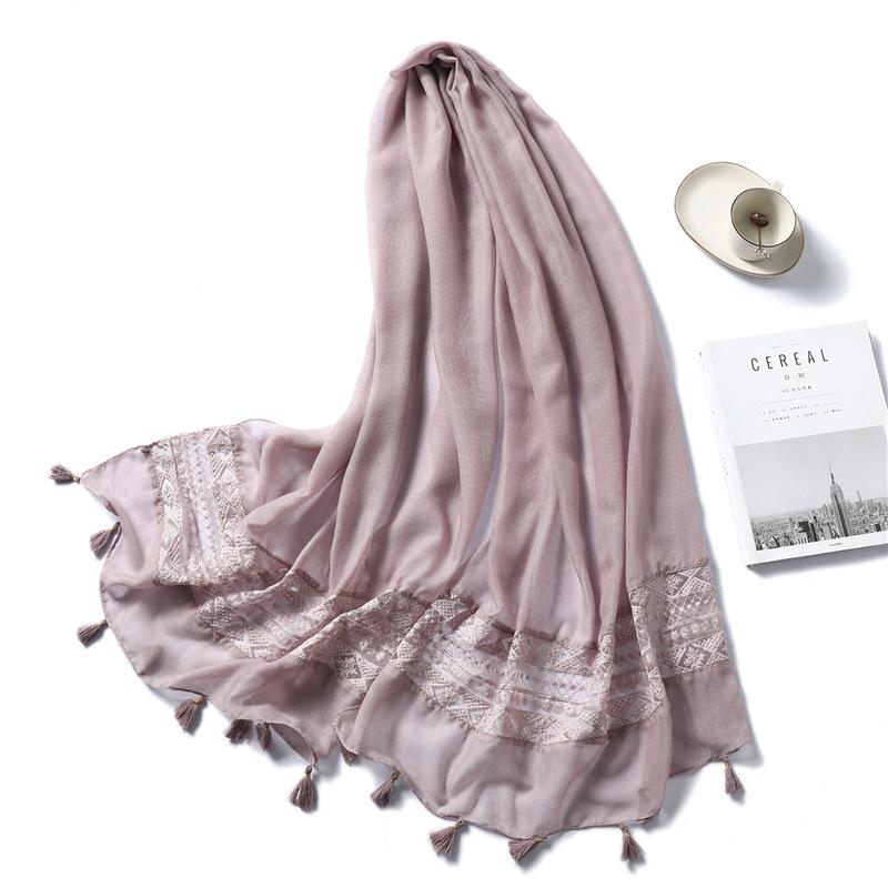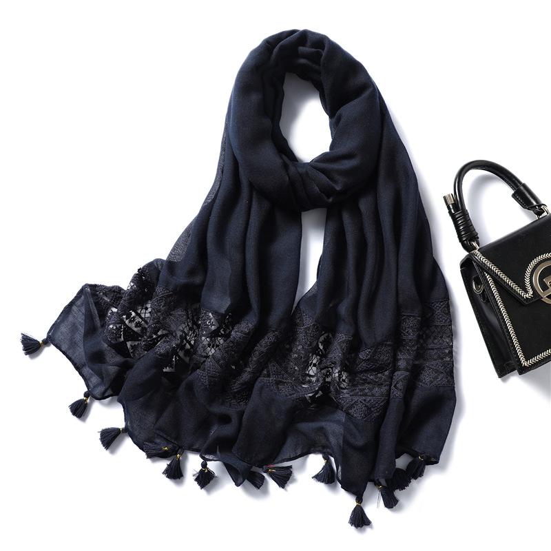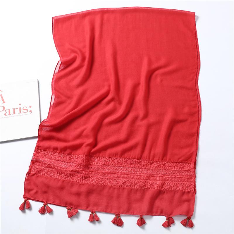 2024 Новый осенне-зимний теплый хлопковый и льняной однотонный шарф, кружевной ажурный шарф с кисточками, универсальная шаль