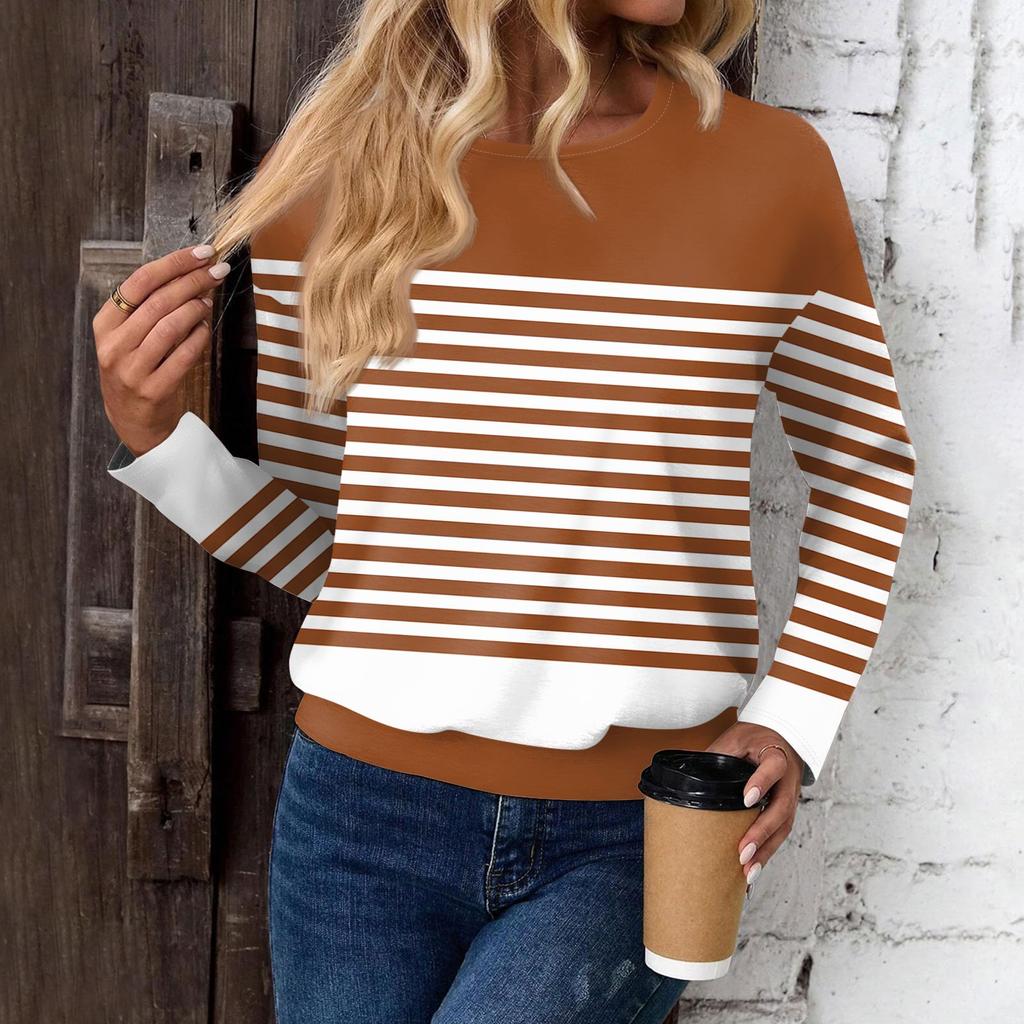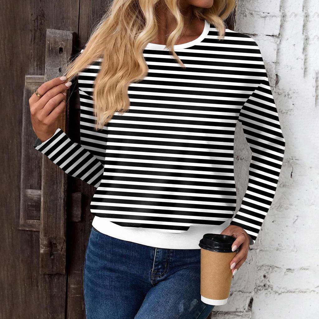 Женский модный повседневный топ с длинными рукавами и принтом, открытыми плечами и круглым вырезом
